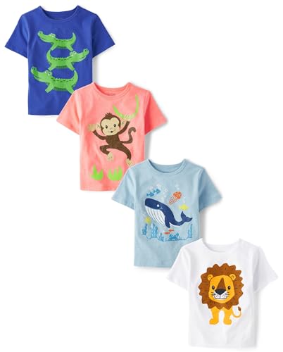 {"about_product": ["GRAPHIC T-SHIRT — A classic, comfortable fit with graphics he'll love.", "FABRIC — Made of 60% cotton/40% polyester jersey", "DESIGN — Features short sleeves and rib-knit crew neck", "MULTIPACK — 4-pack of graphic tees: 1 shark design, 1 gator design, 1 giraffe design, 1 tiger design", "THE CHILDREN'S PLACE — We offer a huge selection of kid's clothing! Shop us for jeans, shorts, leggings, chinos, polo shirts, dresses, pajamas, and accessories."], "product_description": "The Children’s Place offers a huge selection of kid's clothing! Shop us for jeans, shorts, leggings, chinos, polo shirts, dresses, uniforms, pajamas, and accessories. Made with premium quality materials at a great value. Kids clothing made simple.", "product_information": {"ASIN": "B0CHM2B22F", "Department": "baby-boys", "Manufacturer": "The Children's Place", "Customer Reviews": "4.8 4.8 out of 5 stars \n\n (1,637)", "Best Sellers Rank": "#16,588 in Clothing, Shoes & Jewelry (See Top 100 in Clothing, Shoes & Jewelry) #9 in Baby Boys' Tees", "Item model number": "3037172", "Date First Available": "September 8, 2023"}, "product_details": {"Origin": "Imported", "Fabric type": "60% Cotton, 40% Polyester", "Closure type": "Pull On", "Care instructions": "Machine Wash"}}