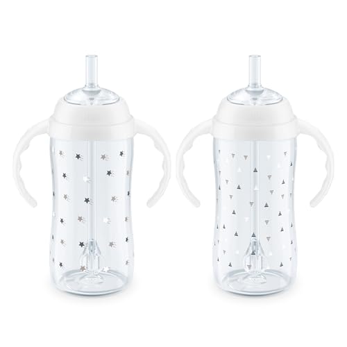 {"about_product": ["Features a 100% Soft Silicone Weighted Straw: Follows liquid in the cup, allowing drinking from any angle.", "Promotes Easy Transition: From bottle or soft spout sippy cup to sippy cup with straw.", "Includes Easy-Grip, Anti-Slip Handles: Removable as the baby grows and easy for baby to hold.", "Designed with a Soft Straw: Gentle on the gums and allows liquids to flow easily when sipped, preventing spills.", "Incorporates an Air Vent: Helps reduce the amount of air baby swallows, minimizing gas.", "BPA-Free and Dishwasher Safe: Ensures safety and promotes easy maintenance.", "Recommended for ages 8 Months and Up: Ideal for babies and toddlers as they start to transition to straw cups."], "product_description": "Allow your child to quench their thirst effortlessly with the NUK Learner Straw Cup. Designed ideally for ages 8 months and up, this cup is perfect for helping in the smooth transition from a bottle or sippy cup with a soft spout to a sippy cup with a straw. The 10 oz cup is equipped with a 100% soft silicone straw that adjusts according to the liquid level to allow drinking from any angle. Boasting an easy-grip, removable handle, this cup grows in sync with your baby. Crafted to be gentle on the gums, the straw also prevents spillage, keeping mess to a minimum. The unique air vent design helps to minimize gas ingestion. This BPA-free cup is also dishwasher safe for easy maintenance.", "product_information": {"UPC": "885131702609", "ASIN": "B0CLHGD922", "Size": "10 Ounces", "Brand": "NUK", "Color": "Blue", "Shape": "Round", "Style": "10 oz, 2-Pack", "Theme": "Baby", "Pattern": "Cup", "Unit Count": "1.0 Count", "Item Weight": "7.4 ounces", "Reusability": "Reusable", "Manufacturer": "Newell", "Number of Items": "1", "Special Feature": "Dishwasher Safe", "Material Feature": "Insulated", "Number of pieces": "2", "Best Sellers Rank": "#382 in Baby (See Top 100 in Baby) #14 in Toddler Cups", "Item model number": "2196367", "Batteries required": "No", "Material Type Free": "BPA Free", "Product Dimensions": "3\"W x 8.5\"H", "Included Components": "Lid", "Tick-repellent material": "Silicone", "Product Care Instructions": "Dishwasher Safe", "Recommended Uses For Product": "Home"}, "product_details": {"Brand": "NUK", "Color": "Blue", "Capacity": "10 Fluid Ounces", "Material": "Silicone", "Special Feature": "Dishwasher Safe"}}