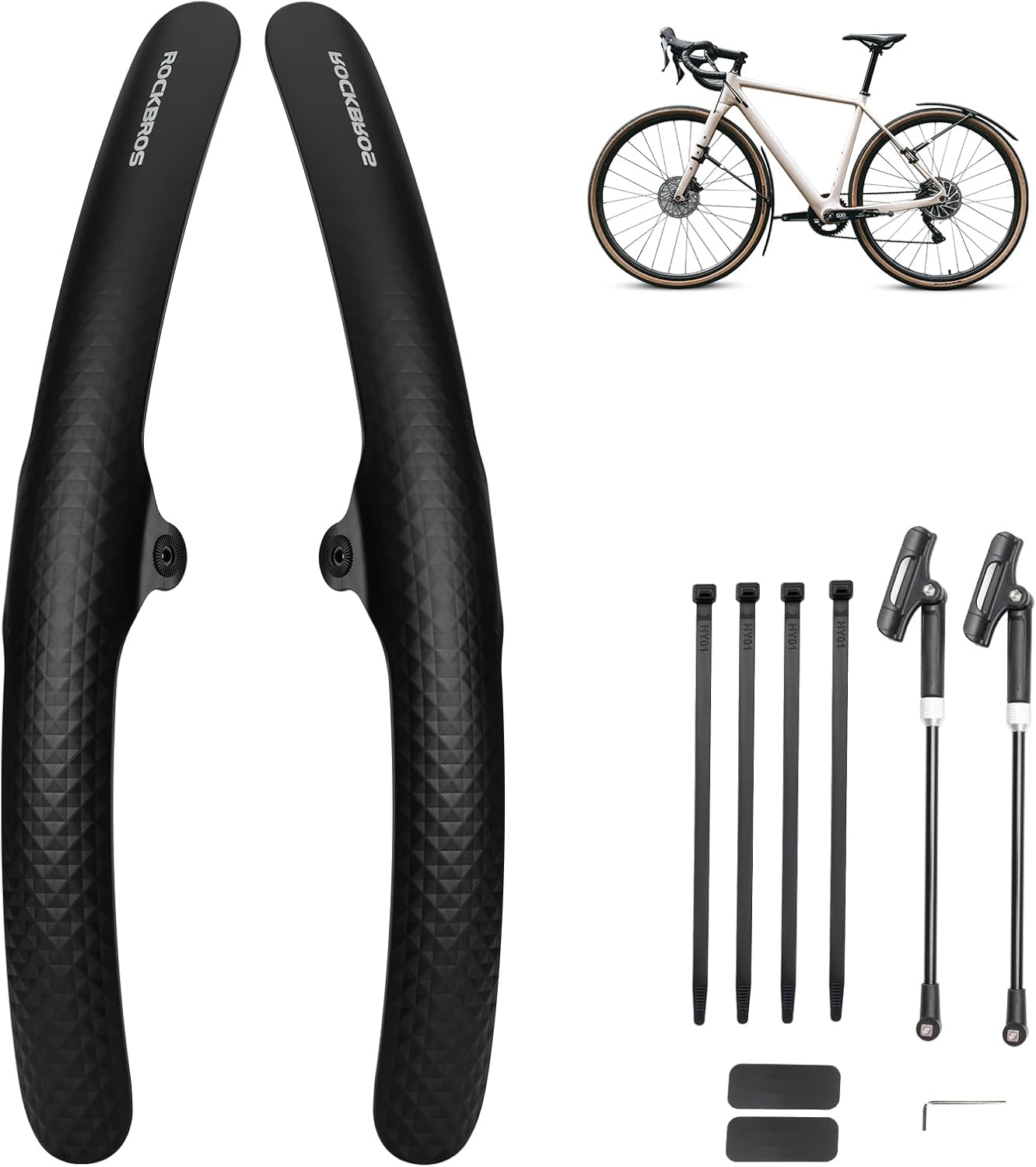{"about_product": ["【Durable & Sturdy】 ROCKBROS bike fenders are made of PP material, which is tough and not easy to break. It will not deform even under the sun exposure. The design of two gears makes the bicycle fender very stable during riding without shaking", "【East to Install & Quick Release】You only need to read the details and use only an included Allen wrench to complete the bike fender set installation easily. On sunny days, you can easily remove the bike fenders 700c without using any tools", "【Multi-angle Adjustment 】You can find the right angle for your bike tires by adjusting the two gears. The length of the bike mud guard support rod also supports adjustment within the range of 28-32CM", "【Small wind resistance & Lightweight】 The bicycle mud guard adopts a streamlined design that fits the wheel, which can effectively reduce the wind resistance when riding. Ultra-light weight also makes your ride easier.", "【 Universal Compatibility】 Our bike fender is designed to fit both front and rear wheels seamlessly. With an adjustable structure, it can be easily installed on various bike types, including mountain bikes, road bikes, and city commuters, ensuring a customized fit for every cyclist."], "product_description": null, "product_information": {"ASIN": "B0CLR88VYX", "Color": "black(2 fenders)", "Material": "Pp", "Brand Name": "ROCKBROS", "Manufacturer": "ROCKBROS", "Package Weight": "0.59 Kilograms", "Best Sellers Rank": "#89,975 in Sports & Outdoors (See Top 100 in Sports & Outdoors) #29 in Bike Fenders", "Date First Available": "October 25, 2023", "Item Package Dimensions L x W x H": "18 x 6 x 3 inches"}, "product_details": {}}