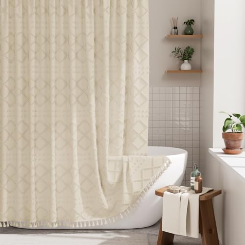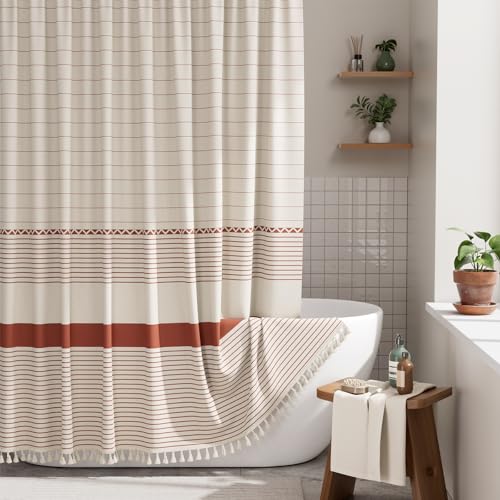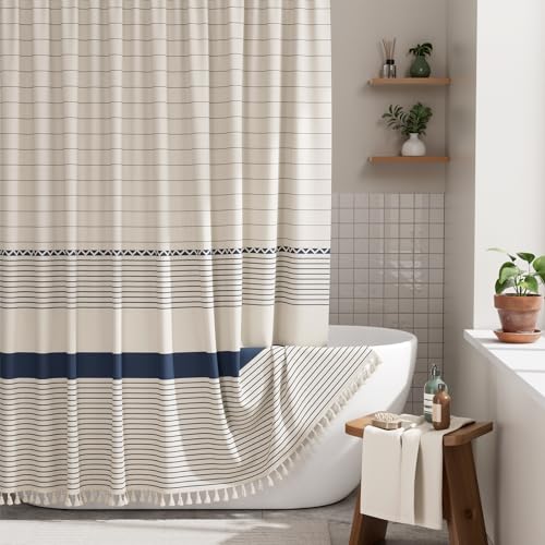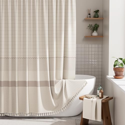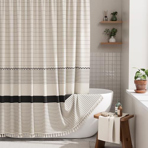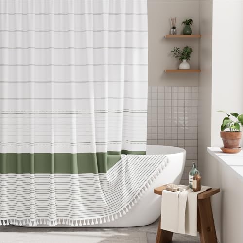 {"about_product": ["100% Faux Linen", "Linen Look & Cotton Touch: Although linen looks high-end, it feels tough and is hard to maintain, easily shrinks after washing, and costs much more than faux linen. The Amazerbath faux linen shower curtain adopts the linen look while avoiding the rough touch and is machine washable, easy to maintain. And at a reasonable price, you can easily achieve your dream high-end bathroom.", "Boho Farmhouse Shower Curtain Set: Experience the tranquility of the countryside with our farmhouse shower curtain! Step away from the hustle and bustle of the city and reconnect with nature, allowing yourself to indulge in comfort and relaxation during your bath.", "Tassel Accents for a Boho Touch: This light tan toned shower curtain features trendy tassels that blend Bohemian style with farmhouse aesthetics, adding a cozy and calming atmosphere to your bathroom.", "All-purpose Shower Curtain Set: The cloth shower curtain comes with 12 rust-resistant metal grommets and 12 upgraded clear plastic hooks. Our standard size fabric shower curtain fits most bathtubs and shower stalls.", "Warm Tips: The Amazerbath beige boho shower curtain offers a certain degree of water resistance. If you desire higher waterproof performance, we recommend using it together with a waterproof plastic shower curtain liner."], "product_description": null, "product_information": {"ASIN": "B0CLRVYLK1", "Size": "72\"W x 72\"L (Pack of 1)", "Brand": "AmazerBath", "Color": "Stripe Sage Green", "Style": "Farmhouse", "Theme": "Farmhouse", "Opacity": "80%", "Pattern": "Striped", "Seasons": "All Season", "Material": "Fabric", "Room Type": "Bathroom", "Top Style": "Grommet", "Model Name": "Shower Curtain Sets", "Unit Count": "1.0 Count", "Weave Type": "Machine made", "Fabric Type": "100% Faux Linen", "Item Weight": "1.63 pounds", "Curtain Form": "Shower Curtain", "Manufacturer": "AmazerBath", "Curtain pleat": "Ripple Fold", "Embellishment": "Tassels", "Hanging Method": "Grommet", "Package Weight": "0.74 Kilograms", "Number of Items": "1", "Special Feature": "Water Resistant", "Best Sellers Rank": "#9,108 in Home & Kitchen (See Top 100 in Home & Kitchen) #18 in Shower Curtain Sets", "Item model number": "72x72 IN", "Batteries required": "No", "Lining Description": "Unlined", "Product Dimensions": "72\"L x 72\"W", "Included Components": "Hook", "Indoor/Outdoor Usage": "Indoor", "Age Range (Description)": "Adult", "Product Care Instructions": "Machine Wash", "Recommended Uses For Product": "Indoor"}, "product_details": {"Brand": "AmazerBath", "Color": "Stripe Sage Green", "Opacity": "80%", "Material": "Fabric", "Product Dimensions": "72"L x 72"W"}}