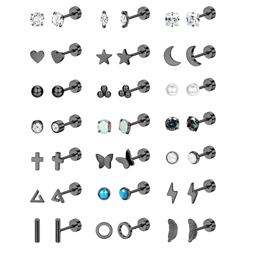 {"about_product": ["Hypoallergenic Surgical Steel Earrings: Premium 316L stainless steel earrings for sensitive ears. No allergy, no irritation, lead and nickel free, no rust and no tarnish. Newly upgraded vacuum plated is safer than normal plating. Smooth surface, comfortable to wear.", "Comfortable Flat Back Earrings: Upgraded flatback earrings have internally screw thread design, safe and not easy to fall off, convenient to wear. Screw back earrings remove the pain and hassle of traditional silver earrings, without stabbing your neck. Perfect for wearing while sleeping, bathing or exercising!", "Earrings Sets for Multiple Piercing: Including 21 pairs silver flat back stud earrings, cz stud earrings, butterfly earrings, star and moon earrings, heart earrings, ball earrings, etc. Can be used as as cartilage earring, helix piercing, first hole, second hole, third hole, tragus piercing, etc. Feel free to match your style!", "Silver Earrings Set Size: Gauge:20G(0.8 mm), post length: 7mm, flat back size: 5mm. Cubic zirconia/ball diameter: 4mm, other stud diameter: 4-6mm. Well fitted and stackable, cute small cartilage earrings set, create many different looks for you and get more compliments!", "Wonderful Gift Choice: Hypoallergenic and comfortable flat back earrings are suitable for women and men. Cartilage earrings set with danity gift box, ideal gift for your family or friend on Christmas, Birthday, Mother's Day, Graduation, Valentine's Day, New Year, Party, etc. Express your most sincere love to them!"], "product_description": null, "product_information": {"ASIN": "B0CN6QPK7C", "Department": "Unisex Adult", "Manufacturer": "Jstyle", "Customer Reviews": "4.4 4.4 out of 5 stars \n\n (427)", "Best Sellers Rank": "#32,539 in Clothing, Shoes & Jewelry (See Top 100 in Clothing, Shoes & Jewelry) #167 in Women's Stud Earrings", "Item model number": "JT-F-E0275", "Date First Available": "November 13, 2023"}, "product_details": {"Gem type": "Cubic Zirconia", "Material": "Stainless Steel", "Metal type": "Stainless Steel", "Back Finding": "Screw Back", "Earring design": "Stud", "Item type name": "Earrings"}}