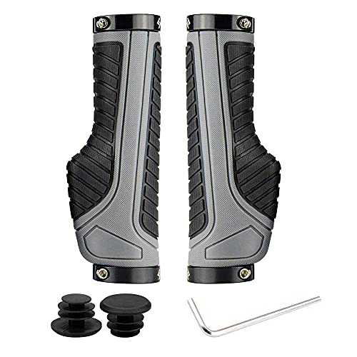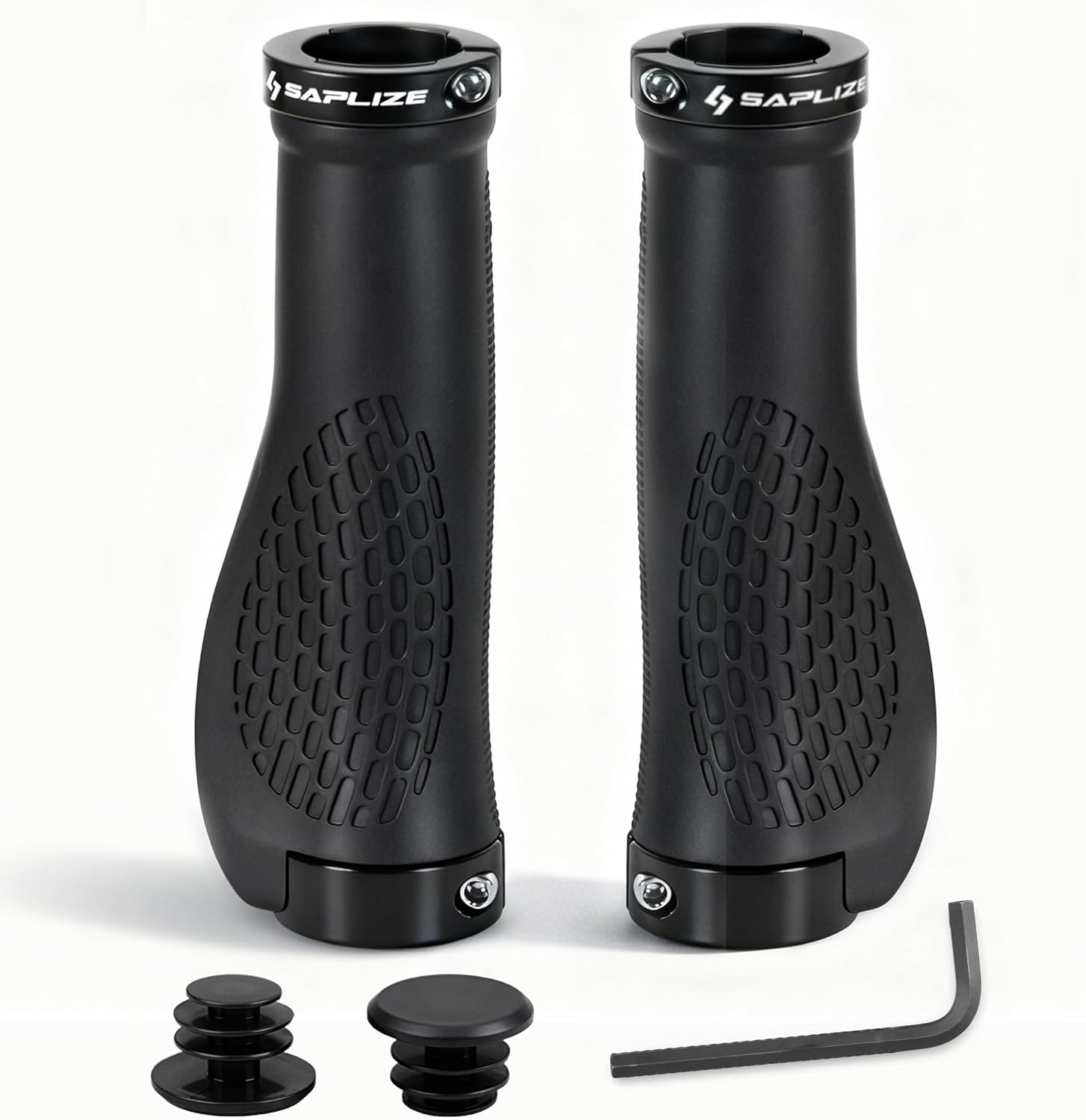 {"about_product": ["Experience the classical anti-slip pattern with a hard plastic core and medium soft TPE wrap. Tips: Avoid over-tightening the screws. For replacement needs, please reach out if any screws break during installation", "Ergonomic design ensures optimal wrist comfort, while anti-slip and shock-absorbing features enhance ease during extended cycling sessions. Ideal for long rides and demanding terrains", "Double Aluminum Alloy Rings Locking on Both Ends.", "Inner diameter=0.87\", Length=5.1\", Weight=2.7 oz/grip, Suitable for most of bike handlebars. NOTICE: They're too long if you have twist grip shifters or other gadgets already on your handlebars.", "Enjoy 12 months of quality assurance to enhance your experience and satisfaction"], "product_description": null, "product_information": {"ASIN": "B0CP288D3G", "Size": "Standard", "Brand": "SAPLIZE", "Color": "Black, Black Rings", "Material": "Rubber", "Brand Name": "SAPLIZE", "Model Name": "PR02-BKBKST-2", "Sport Type": "Cycling", "Item Weight": "138 Grams", "Part Number": "ESB-PR02-BKBKST-2@#A01", "Manufacturer": "Eshow Sportec", "Package Weight": "0.19 Kilograms", "Number of Items": "5", "Suggested Users": "unisex-adult", "Best Sellers Rank": "#24,968 in Sports & Outdoors (See Top 100 in Sports & Outdoors) #28 in Bike Grips", "Product Dimensions": "5.1\"L x 0.87\"W", "Included Components": "Bike Handlebar Grip * 2, Hex Key Wrench * 1, Plastic End Cap *2", "Date First Available": "November 27, 2023", "Vehicle Service Type": "Bicycle, Mountain Bike", "Warranty Description": "13 months quality gaurantee", "Item Dimensions LxWxH": "5.1 x 0.87 x 0.04 inches", "Item Package Dimensions L x W x H": "7.09 x 5.98 x 1.61 inches"}, "product_details": {"Brand": "SAPLIZE", "Color": "Black, Black Rings", "Material": "Rubber", "Product Dimensions": "5.1"L x 0.87"W", "Vehicle Service Type": "Bicycle, Mountain Bike"}}