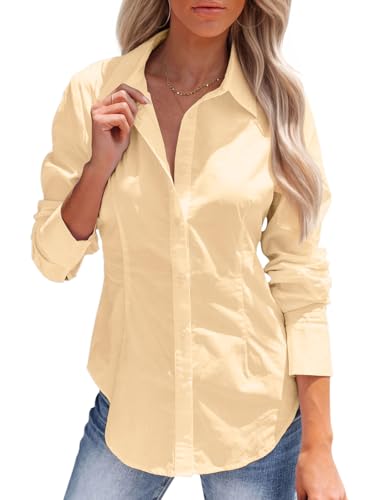 {"about_product": ["Sizing Note: This item runs smaller than standard sizes. We recommend checking the specific measurements of each size rather than relying on your usual size. Our chart includes bust, waist, length, cuff, shoulder, bicep, back and hem width dimensions for accurate selection. Fit Note: lf you prefer a precise look, consider sizing up one size", "Features: black button up shirts woman,white button down shirts for women, classic poplin shirt, dress shirts for women,collared long sleeve blouse, wrinkle free , Slim Fit, plain solid corset top, V neck collared tunics, Pink blouses for women fashion, Casual Long Sleeve Button Down Shirts Tops,Shirts for work formal business. The long sleeve button up shirt for women make you look more trendy, stylish,fashion and professional.", "Match Styles: long sleeve classic button down shirt can meet your different matching needs with cami, short, jeans, pants, leggings, jacket. Wrinkle Free Easy Care woman button up shirt, slim fit shirt for work business, button down corset design, perfect fit button shirts.", "FORMAL or INFORMAL WEAR as YOU LIKE - Great blouse for casual wear and business, Suit for office, business events, casual, daily wear, school, Street wear and more occasion; fits to any season", "EASY to CARE - Hand or machine wash in low temperature, Dark colors separately, Hang dry; Please use our size chart image as a guide before your order"], "product_description": null, "product_information": {"ASIN": "B0CRVLHN9J", "Customer Reviews": "4.4 4.4 out of 5 stars \n\n (4,602)", "Product Warranty": "For warranty information about this product, please click here", "Best Sellers Rank": "#1,060 in Clothing, Shoes & Jewelry (See Top 100 in Clothing, Shoes & Jewelry) #3 in Women's Button-Down Shirts", "Date First Available": "January 9, 2024"}, "product_details": {"Origin": "Imported", "Fabric type": "65% Cotton, 30% Polyester, 5% Spandex", "Closure type": "Button", "Care instructions": "Machine Wash"}}
