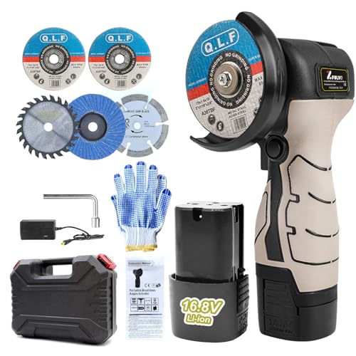 {"about_product": ["【Cordless Use/High Capacity Battery】Cordless angle grinder runs on 16.8V lithium battery, cordless design eliminates the hassle of tangled cables, easy to carry, can be used indoors and outdoors.2000mAh high-capacity rechargeable lithium-ion battery and a fast charger keep the angle grinder working stably for a long time.Warm tips: Angle grinder upgraded new self-locking switch, no need to use a screwdriver to fix the saw blade", "【Powerful/High Speed】 Newly designed electric power angle grinders uses a brushed motor, 19500rpm high speed metal grinder and 2000mAh lithium battery can continuously provide strong and stable, power grinders to help you efficiently and stably complete the material removal speed, saving your time and energy", "【Comfortable Handholding / Reasonable Design】The angle battery grinder comes with a handheld rubberized handle and non-slip texture, mini angle grinder bringing you a better using experience. Humanized design spindle lock is easy to change the grinding disk. Side toggle switch design, side automatic locking start switch, small angle grinder ergonomic handle design, easy to grip and use, one hand operation", "【Sturdy/Anti-Splash】 16.8V battery powered grinder has a brushed motor design and is powered by lithium batteries, so you can charge it anytime, anywhere. The ventilation holes in the shell can better dissipate heat during work and prevent the machine from overheating. The thickened baffle plate can avoid workpiece debris splashing into the machine and causing machine damage, effectively extending the life of the machine. Weighing only 1100g, it can be used by men/women with one hand", "【Package Contents/Application Wide】Grinder tool cordless package includes:1xCordless Angle Grinder;6xCutting Wheels;1xCharger; 2xBattery,2xWrench and glove. Handheld angle grinder hold can be used for grinding, cutting, sanding and polishing processing of various materials, such as metal, tile, concrete or other solid materials.Small angle grinder can also be used for home improvement, such as cutting and polishing tiles, wood, stone, steel, pipes, conduits, etc"], "product_description": null, "product_information": {"UPC": "784104449209", "ASIN": "B0CQK7SPHT", "Brand": "ZFULVO", "Color": "Grey", "Style": "mini angle grinder", "Voltage": "16.8", "Wattage": "550 watts", "Material": "Plastic,Rubber,Steel", "Item Weight": "3.63 pounds", "Part Number": "MINI-JIMOJI", "Manufacturer": "ZFULVO", "Power Source": "Battery Powered", "Wheel Diameter": "76 Millimeters", "Best Sellers Rank": "#7,370 in Tools & Home Improvement (See Top 100 in Tools & Home Improvement) #6 in Power Angle Grinders", "Item model number": "MINI-JIMO01", "Product Dimensions": "7.87\"L x 3.14\"W x 1.96\"H", "Batteries Included?": "No", "Batteries Required?": "No", "Included Components": "1 angle grinder ,1 pair of gloves ,1 wrench ,1 instruction manual, 2 metal cutting blades, 1 grinding metal piece ,1 stone cutting blade, 1 wood cutting blade ,1 sanding sheet", "Date First Available": "October 19, 2023", "Maximum Rotational Speed": "19500 RPM"}, "product_details": {"Brand": "ZFULVO", "Style": "mini angle grinder", "Material": "Plastic,Rubber,Steel", "Power Source": "Battery Powered", "Product Dimensions": "7.87"L x 3.14"W x 1.96"H"}}