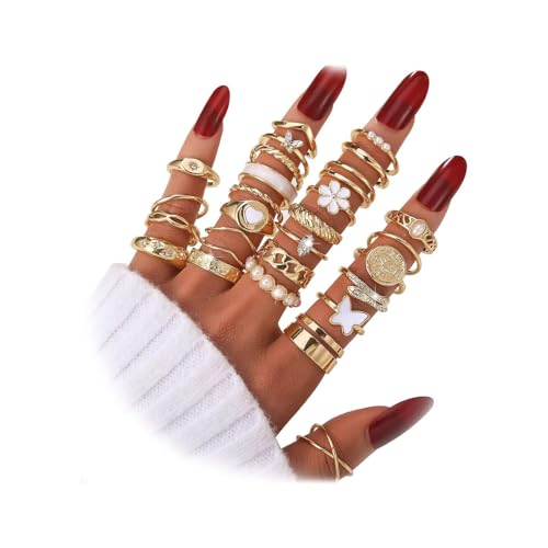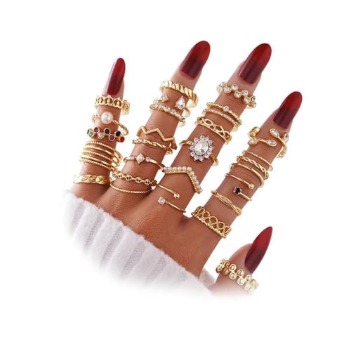 {"about_product": ["GOLDEN RINGS PACK: Set contains 20 rings in a variety of styles and a mix of sizes. They can be worn individually or stacked on different fingers. So that you can wear your ring every day without repeating it", "MATERIAL: Made of selected high quality alloy, smooth cut surface, won't scratch your fingers, not easy to change color and rust, hypoallergenic, ladies and can use it with peace of mind", "DESIGN: The style is simple and elegant, with cross ring, wave ring, heart ring, twist ring, open ring and so on. Many of the rings are set with numerous rhinestones, which can sparkle in the sunlight or under the light, so you can easily become the focus of the crowd and exude glamor all the time", "SIZE: Mixed sizes include 5.5~9 to fit both your pinky and thumb. Please check the sizing chart on the item detail page before ordering", "OCCASION: Golden is the color that never goes out of style. This ring set is a great decorative jewelry when you use it on weekdays at work, , or when going to parties, weddings, dinners", "IDEAL GIFT: This fashion ring set is a perfect gift to give to your female friends on Birthday, Mother's Day, Valentine's Day, Thanksgiving, Anniversary, Christmas and other festivals. They will be happy to receive such a wonderful gift"], "product_description": "Includes a variety of lovely stackable alloy rings for women. Take your outfit to the next level.", "product_information": {"ASIN": "B0FQJCJ98Z", "Department": "womens", "Manufacturer": "KISS WIFE", "Customer Reviews": "4.0 4.0 out of 5 stars \n\n (2,467)", "Best Sellers Rank": "#1,589 in Clothing, Shoes & Jewelry (See Top 100 in Clothing, Shoes & Jewelry) #1 in Women's Stacking Rings", "Date First Available": "September 10, 2025"}, "product_details": {"Gem type": "No Gemstone", "Material": "Metal", "Ring size": "6, 7, 8, 9 (mixed)", "Metal type": "No Metal Type", "Item type name": "Stackable"}}