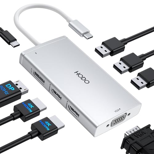 {"about_product": ["USB C Docking Station 8 IN 1: HoDo USB C Docking Station with Dual HDMI 4K (1*60HZ & 1* 30HZ), 1*4K@60HZ DisplayPort, 1*1080P VGA,3* USB 2.0,USB C Power Charging Port (max 100W). Please Note: on MacOS system, the screens of external monitors are the same, no matter they are displayed in mirror mode or extended mode", "Docking Station 4K Display Adapter: The Laptop Docking Station with 4 video output ports: 2 HDMI+DP+VGA, can output up to 4K Dual/Triple Display videos; For quadruple display Dual HDMI, DP, and VGA all are 1080@60Hz. Please make sure your laptop specification support DP1.4 signal output. If the VGA port is connected, it will affect the resolution of all displays up to 1080P only", "100W USB C PD Charging Port: Computer Docking Station for Dell Hp laptop supports up to 100W input & 87W(safe)output into your laptop. Please Note: please ensure your laptop's USB C port supports power delivery protocol and please use at least 65W power adapter(not included) when charging with this usb c hub,using a lower wattage power charger may cause a system warning. Note: The power cord is not included", "USB C Hub Multiport Adapter: This USB C Dock with 3 usb 2.0 ports, allows your conveniently connect keyboard,mouse, usb flash driver, usb c hard disks, transfer speeds up to 480Mbps, USB 2.0 allows you to connect keyboard or mouse without any lag", "Extensive Compatibility: This USB C Dongle Adapter specially designed for laptops with Full-featured USB Type-C port (support Display, charging, data transfer protocol), such as Dell XPS13/15/17, Dell latitude 5420/7420, Lenovo Thinkpad, Lenovo Yoga, HP Elitebook 840,HP envy, Surface pro 7 8, MacBook Pro/Air. If you experience any issues while using this USB C Hub, please reach out to us through the order page and we will solve the problem for you within 24 hours"], "product_description": null, "product_information": {"ASIN": "B0CRDJRZP6", "Item Weight": "4.6 ounces", "Manufacturer": "HODO", "Best Sellers Rank": "#1,133 in Electronics (See Top 100 in Electronics) #7 in Laptop Docking Stations", "Package Dimensions": "5.24 x 3.19 x 0.67 inches", "Date First Available": "January 8, 2024"}, "product_details": {"Brand": "HODO", "Color": "Grey 8 Port USB C Docking Station", "Special Feature": "Fast Charging, Fast Data Transfer, Heat Resistant, Plug and Play", "Compatible Devices": "(function(f) {var _np=(window.P._namespace(\"DetailPageProductOverviewTemplatesJava\"));if(_np.guardFatal){_np.guardFatal(f)(_np);}else{f(_np);}}(function(P) { P.when('A').execute(function(A){ A.on('a:truncate:po-attribute-truncate-4:updated', function(data) { var isTruncated = !data.truncateInstance.getIfTextFits(); var seeMoreElement = document.getElementById('po-attribute-see-more-id-4'); if(seeMoreElement) { seeMoreElement.style.display = isTruncated ? '' : 'none'; } }) }); })); Work with the Laptop has thunderbolt 3/4 /USB-C 3.1 Gen1/Gen2(with DP)/ USB-C 3.2 Gen 1/Gen2(with DP);Dell XPS 12 2-IN-1 9250/XPS 13 Laptop 9315 9340 9315 9350 9360 9370 9380 9320/XPS/Dell Latitude 3540 Laptop Model/Latitude 3440/3340 or 2-in-1/3450/3550/3110/3140/3420/3445/3510/3500/3520/3540/3571/Alienwarex14/x15/x16/x17 R2 Gaming Laptop/Dell Alienware x15 R7 Gaming Laptop/Alienware m16/m18 Gaming Laptop/HP Spectre Laptop 13-af001TU/Spectre x360 13t/Spectre folio (13t-ak000cto)/HP Spectre x2/HP Spectre x360/HP Elite×2 1012/HP Elitebook Folio G1/HP ZBook 15 G3/HP Laptop 13-af001TU/HP Laptop 13-af001TU/HP Envy Laptop 16-h1047nr/HP Envy x360 13-bd0080ng/HP Envy 360 convertible 15/HP EliteBook 855 G8/HP EliteBook G7/HP EliteBook 860 G10 16 inch/HP EliteBook 860 G9 16inch,etc See more", "Hardware Interface": "HDMI, Thunderbolt, USB 2.0, USB Type C, VGA"}}