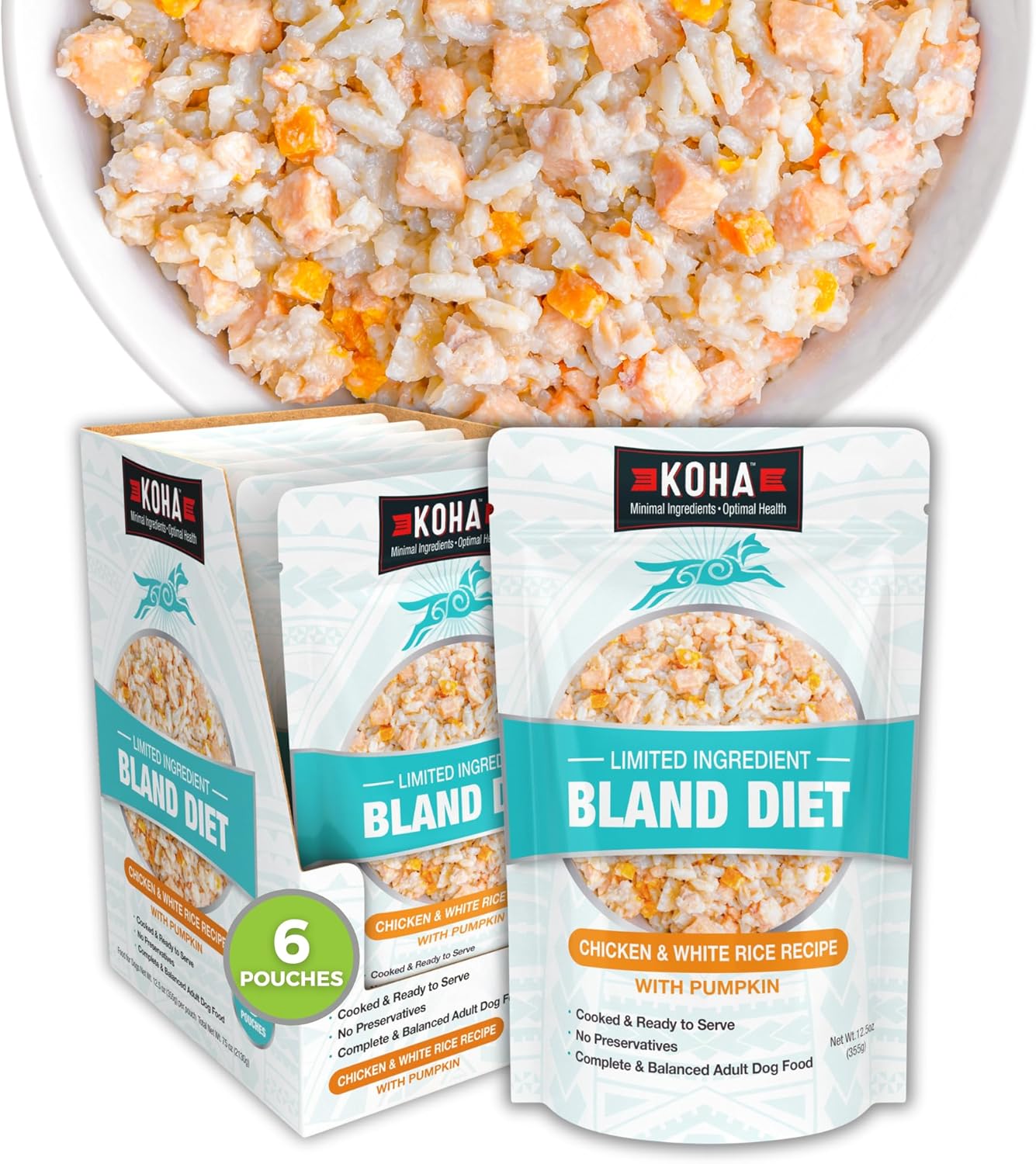 {"about_product": ["One Protein Source: Easy on the Stomach", "Delicious Flavor", "Serve Whole or Blend", "Carefully Crafted", "Pumpkin and Rice Aid in Digestive Health", "Pre-Cooked, Chill After Opening", "Ideal for Mature Dogs", "Meal or Mixer Option"], "product_description": null, "product_information": {"ASIN": "B0CRFCR53X", "Size": "12.5 Ounce (Pack of 6)", "Brand Name": "KOHA", "Department": "Pets", "Directions": "Open the package and serve the food to the dog", "Item Weight": "5.24 pounds", "Manufacturer": "KOHA", "Number of Items": "6", "Breed Recommendation": "All Breed Sizes", "Date First Available": "February 23, 2024", "Age Range Description": "Senior", "Item Dimensions LxWxH": "5.59 x 1 x 8.5 inches", "Target Audience Keyword": "dogs", "Specific Uses for Product": "Digestive Health", "Item Package Dimensions L x W x H": "9.33 x 6.54 x 5.59 inches"}, "product_details": {"Brand": "KOHA", "Flavor": "Chicken", "Item Form": "Pâté", "Age Range (Description)": "Senior", "Specific Uses For Product": "Digestive Health"}}