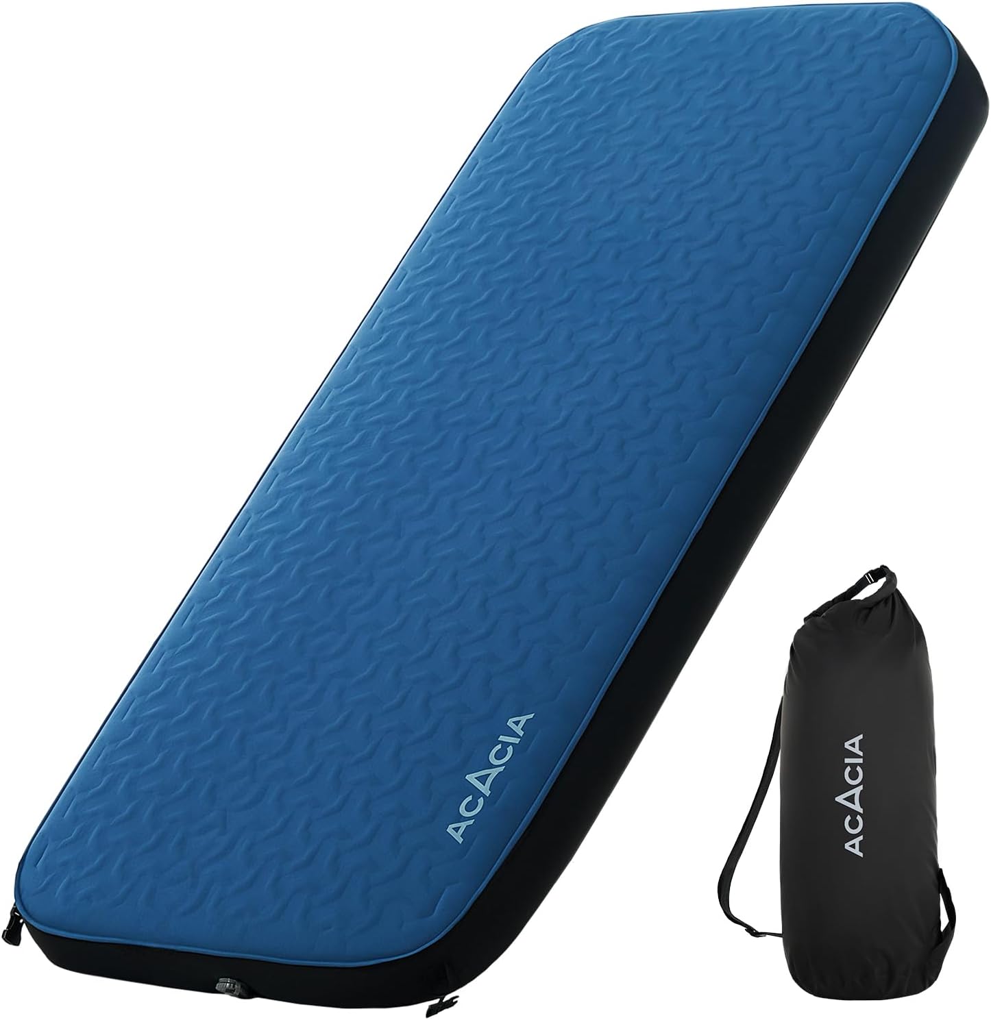 {"about_product": ["???-???? ??????? ??? ????? ????: Sleep just like you do at home. This ultra-thick self-inflating pad features 4.3\" of foam support and holds up to 440 lbs without bottoming out—ideal for side sleepers and restless nights. The soft, noiseless polyester surface adds comfort for camping, car trips, and more", "????-??-????, ?????-???????? ??????: The Y-shaped telescopic foam structure compresses the pad’s volume by up to 60% after deflation—making it lighter and more compact than traditional foam air mattresses. As it deflates, a built-in crease line naturally forms down the center, making it easier to roll and pack in seconds", "?????????? ????????? & ???????????? ????????: The 2-way valve takes care of most inflation and deflation automatically. Dial in your ideal softness using the included carry bag as a pump sack to fine-tune air volume. Want it even faster? Use the electric air pump (sold separately) for truly effortless setup", "?????????? ??? ???-?????? ???????: Built for year-round comfort, our sleeping pad features an R-value of 6 for reliable warmth in winter and breathability in summer. Side buckles let you connect multiple pads together to expand your sleeping space—perfect for couples, families, or extra room to sprawl", "????? ???? & ???’? ??? ??? ????: Made with rugged 30D elastic fabric and a TPU reinforced coating, our camping air mattress is highly resistant to abrasions, tears, and punctures. Heat-molded seams keep air locked in for lasting inflation—no leaks, no worries. Built to go the distance, wherever you camp"], "product_description": "Product Description Why Choose Acacia Self-Inflating Sleeping Pad?Experience unmatched comfort and convenience with the Acacia Self-Inflating Sleeping Pad, designed for camping and road trips. This sleeping pad combines luxurious comfort with practical features, making it an essential item for outdoor enthusiasts.Special Benefits and Features:-Innovative Y-shaped foam cutting structure, Making it lightweight and can roll up to a compact size for easy carry-The special air column design allows the mattress to automatically form a crease in the middle after deflation. Making it easy to roll up-Point support, more in line with the body curve-R-value of 6, stay cozy year-round-Two-way valve for easy inflating and deflating-The carry bag doubles as a pump sack for easy setup-Comes with two repair kitsSpecifications:Item Wight: 9.5lbs, Foam Filling Weight: 6.2lbsInflated Size: 80\"L x 53\"W x 4.3\"Th, Rolled up Size: 9.8\" x 9.8\" x 25.6\"Weight Capacity Maximum: 440lbsMaterial:Top surface: Skin-friendly polyester and TPU coatingSide and bottom: Wear-resistant and tear-resistant Oxford fabric and TPU coatingInternal filling: High resilience solid foamWarm tips:When used for the first time, the self-inflation might take longer, so it's recommended to manually inflate the mattress with the included sack to allow the foam to regain its elasticity. Manufacturer Contact Information ACACIA (USA) +1 877-CAMP-490 +1 877-226-7490 Mon-Fri: 9:00 am - 5:00 pm PST/PDT", "product_information": {"ASIN": "B0CS5X6DWS", "Size": "Full", "Color": "Blue", "Style": "Sleeping Pad", "Material": "Foam, Oxford fabric, Polyester", "Brand Name": "ACACIA", "Model Name": "TW52BU1", "Sport Type": "Camping, Sleeping Pad, Traveling", "Item Weight": "9.5 Pounds", "Part Number": "TW52BU1", "Manufacturer": "Acacia", "Package Weight": "5.24 Kilograms", "Number of Items": "1", "Suggested Users": "Unisex-Adult", "Best Sellers Rank": "#81,042 in Sports & Outdoors (See Top 100 in Sports & Outdoors) #75 in Self-Inflating Sleeping Mats for Camping", "Fill Material Type": "High resilience solid foam", "Included Components": "Connector * 2, Pump Sack & Carry Bag * 1, Repair Patch, Self-Inflating Sleeping Pad * 1, Zip Ties * 1", "Date First Available": "May 5, 2024", "Warranty Description": "3 year warranty.", "Item Dimensions LxWxH": "80 x 53 x 4.3 inches", "Item Package Dimensions L x W x H": "27 x 11 x 10 inches"}, "product_details": {"Size": "Full", "Brand": "ACACIA", "Color": "Blue", "Material": "Foam, Oxford fabric, Polyester", "Item Weight": "9.5 Pounds", "Special Feature": "Adjustable, Inflatable, Lightweight, Portable, Self Inflating Sleeping Pad", "Target Audience": "Adult, Car camper, Kid, Outdoor enthusiasts, Tweens", "Product Dimensions": "80"L x 53"W x 4.3"Th", "Included Components": "(function(f) {var _np=(window.P._namespace(\"DetailPageProductOverviewTemplatesJava\"));if(_np.guardFatal){_np.guardFatal(f)(_np);}else{f(_np);}}(function(P) { P.when('A').execute(function(A){ A.on('a:truncate:po-attribute-truncate-7:updated', function(data) { var isTruncated = !data.truncateInstance.getIfTextFits(); var seeMoreElement = document.getElementById('po-attribute-see-more-id-7'); if(seeMoreElement) { seeMoreElement.style.display = isTruncated ? '' : 'none'; } }) }); })); Connector * 2, Pump Sack & Carry Bag * 1, Repair Patch, Self-Inflating Sleeping Pad * 1, Zip Ties * 1 See more", "Specific Uses For Product": "Bed, Camping, Sleeping Pad, Traveling"}}