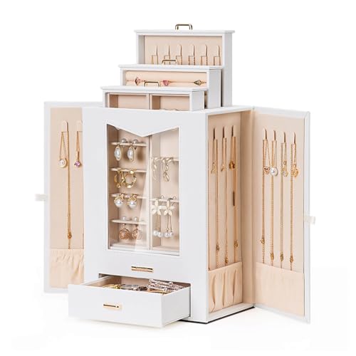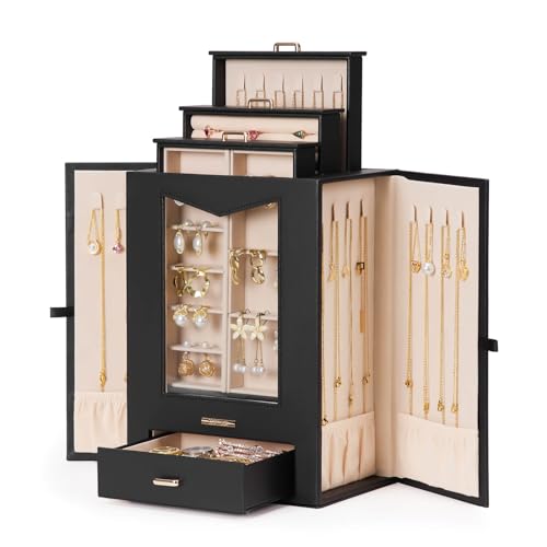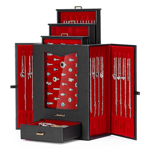 {"about_product": ["Rustic and Elegant: The jewelry box is made of chic grey blue PU-leather, with a soft grey flannel lining to better protect your jewelry from scratches and dust. As a harmonious combination of materials and colors, this jewelry box will catch the eye no matter where you place it", "Combination of Vertical and Horizontal Drawers: The jewelry box has three vertical drawers with ring holders, 8 removable earring clips, 6 hooks for rings, earrings, necklaces, bracelets. The horizontal drawer at the bottom is left empty, providing enough storage capacity for brooches, watches, headdresses and other accessories. Each drawer can be pulled out smoothly with the help of metal handles, allowing you to easily access your jewelry", "Perfect for Jewelry Collection and Display: The jewelry case is equipped with a large transparent window at the front, so that you can directly see the jewelry placed inside through the transparent window. The front two vertical drawers can be changed according to needs, so that different jewelry can be displayed. At the same time, this glass window also protects the jewelry from dust", "Side Opening Design: There are hidden storage spaces on the left and right sides of the jewelry box, which can be opened and closed by magnetic attraction, which is more convenient. There are 8 hooks on the left and right sides, plus the hooks on the vertical drawers, there are a total of 22 hooks, so that you can find a suitable place for your various sizes of pendants, necklaces, bracelets, anklets, etc. After upgrading, the hanging height has been increased to reduce winding", "A Gift Choice: The special jewelry box is specially designed for ladies and girls to store jewelry and save space. It is an ideal gift for Valentine's Day, Mother's Day, Thanksgiving, Christmas, birthday, wedding and anniversary. Size: 11.42 x 8.54 x 5.39 inch"], "product_description": null, "product_information": {"UPC": "810088832970", "ASIN": "B0CTH7DN3W", "Size": "11.42 x 8.54 x 5.39 inches", "Brand": "Homde", "Color": "Grey Blue", "Shape": "Rectangular", "Style": "Modern", "Finish": "Polished", "Pattern": "Solid", "Material": "Faux Leather", "Finish Type": "Polished", "Item Weight": "6.14 pounds", "Manufacturer": "Homde", "Mounting Type": "Freestanding", "Inner Material": "Flannel", "Number of Items": "1", "Special Feature": "Portable, Transparent Window", "Target Audience": "Girls, Women", "Special Features": "Portable, Transparent Window", "Best Sellers Rank": "#31,036 in Clothing, Shoes & Jewelry (See Top 100 in Clothing, Shoes & Jewelry) #164 in Jewelry Boxes", "Item model number": "HJ010-UC092", "Number of Drawers": "5", "Product Dimensions": "5.39\"D x 8.54\"W x 11.42\"H", "Batteries Included?": "No", "Batteries Required?": "No", "Included Components": "Jewelry Box, Manual", "Date First Available": "January 29, 2024", "Jewelry Storage Type": "Jewelry Box", "Number of Compartments": "5", "Recommended Uses For Product": "Bangle, Bracelet, Earring, Necklace, Ring, Watch"}, "product_details": {"Brand": "Homde", "Color": "Grey Blue", "Shape": "Rectangular", "Style": "Modern", "Material": "Faux Leather", "Finish Type": "Polished", "Special Feature": "Portable, Transparent Window", "Target Audience": "Girls, Women", "Product Dimensions": "5.39"D x 8.54"W x 11.42"H", "Recommended Uses For Product": "Bangle, Bracelet, Earring, Necklace, Ring, Watch"}}