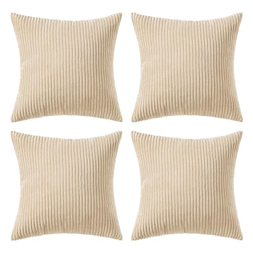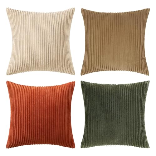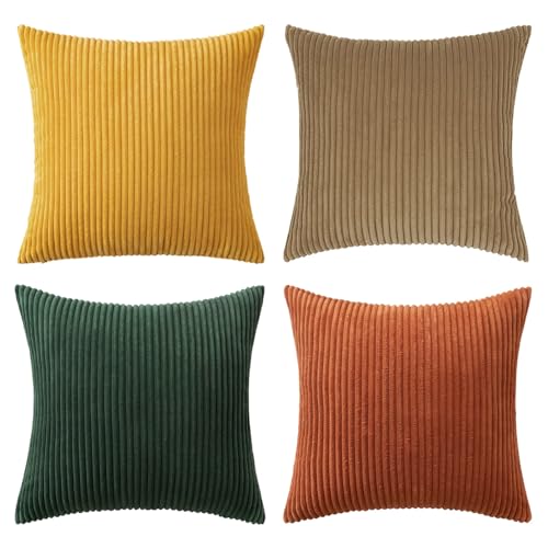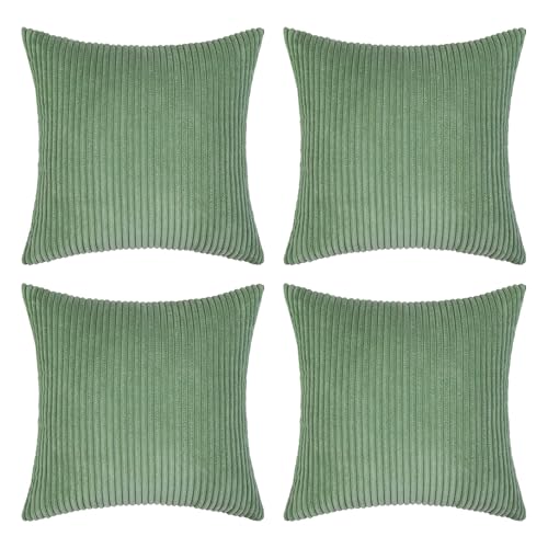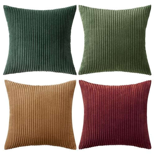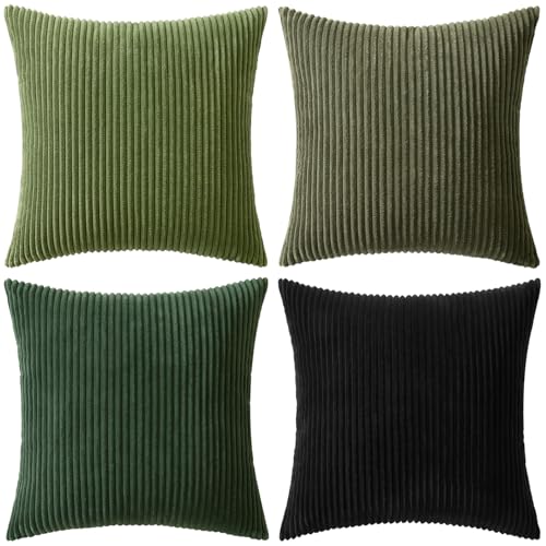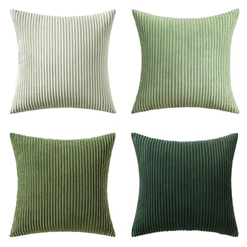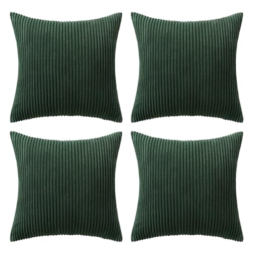 {"about_product": ["100% Polyester", "QUALITY MATERIAL: The pillow cover is composed of a soft and comfy cordury fabric that fearures a cute and elegant boho stripe design. Our pillow covers are of good workmanship, they are tightly sewn without loose threads.", "HIDDEN ZIPPER: Smooth hidden zipper is sewn on the edge so that your pillows are secure inside the cover with easy insertion and removal. It also helps to give the cover an elegant look.", "IDEAL DECORATION: The throw pillow covers presents itself as a great fit for your living room, bedroom, patio, lawn, porch, balcony, couch or sofa becoming great option for close friends or families for several occasions.", "CARE GUIDE: The MIULEE throw pillow covers are easy to care. It is recommended to hand wash and gentle cycle for machine washing with low tumble dry. Please note to not iron the cover.", "PACKAGE CONTENTS: The package includes four 18x18-inch throw pillow covers. Please note that only covers are included in the package and not insert."], "product_description": null, "product_information": {"ASIN": "B0CVVVNB9L", "Brand": "MIULEE", "Color": "Forest Green", "Shape": "Square", "Style": "English", "Theme": "Solid", "Pattern": "Solid", "Material": "Polyester", "Room Type": "Living Room", "Unit Count": "4.0 Count", "Weave Type": "Pile", "Fabric Type": "100% Polyester", "Item Weight": "1.3 pounds", "Pillow Type": "Throw Pillow", "Closure Type": "Zipper", "Manufacturer": "MIULEE", "Number of Items": "4", "Special Feature": "Shrink-Resistant", "Number of Pieces": "4", "Best Sellers Rank": "#1,967 in Home & Kitchen (See Top 100 in Home & Kitchen) #8 in Throw Pillow Covers", "Item model number": "MIULEE", "Batteries required": "No", "Product Dimensions": "18\"L x 18\"W", "Is Euro Pillow Size": "No", "Product Care Instructions": "Hand Wash Only"}, "product_details": {"Color": "Forest Green", "Style": "English", "Pattern": "Solid", "Material": "Polyester", "Product Dimensions": "18"L x 18"W"}}