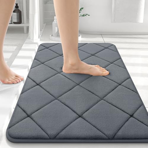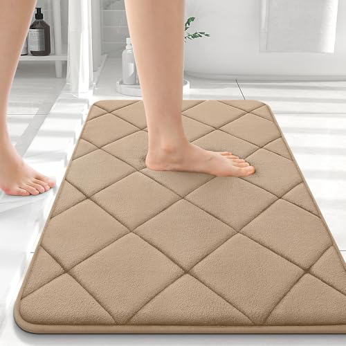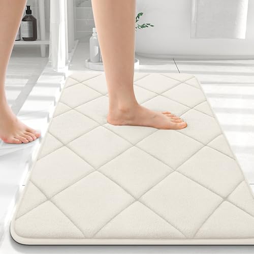 {"about_product": ["[Diamond Design and Cloud-Like Comfort] OLANLY's Memory Foam Bath Mat features an elegant Diamond design, adding a touch of modern luxury to your space. Crafted from ultra-soft microfiber coral velvet outer material and thick cushion memory foam, our bathroom rug provides a cloud-like comfort that contours to the shape of your body, making every step a luxurious experience.", "[Matching Collection, Beautiful Décor & Versatile] Elevate your bathroom decor with our elegant Diamond Design bath mats, ideal for sinks, showers, and beyond. Coordinate with matching toilet lid covers and contour rugs for added warmth and style.", "[Swift Drying Comfort] Pamper yourself with the rapid-drying comfort of OLANLY's soft velvet microfiber bath rugs, providing a delightful solution for moisture absorption after your bath or shower. Immerse yourself in the convenience of a fast-drying memory foam bathroom mat.", "[Sturdy PVC Support] OLANLY's bathroom mat features a robust and enduring PVC backing, designed to prevent any shifting or skidding. This superior construction sets it apart from mats with rubber backing that may degrade over time. Ensure the area beneath the rug stays dry for optimal performance, and never place it on wet surfaces.", "[Easy-care Vibrance] Elevate your bath experience with our easy-to-maintain rugs. These machine-washable bath rugs keep their vibrant colors intact, adding a touch of brilliance to your living spaces. Incredibly easy to clean and maintain, they stay fresh even after multiple washes. The fade-resistant feature ensures the longevity of their vibrant colors."], "product_description": null, "product_information": {"ASIN": "B0CWTZJLSD", "Size": "30\" x 20\"", "Brand": "OLANLY", "Color": "Black", "Shape": "Rectangular", "Style": "Modern", "Pattern": "Geometric", "Material": "Foam", "Room Type": "Bathroom", "Weave Type": "Machine Made", "Item Weight": "1.06 pounds", "Pile Height": "Low Pile", "Manufacturer": "OLANLY", "Rug Form Type": "Bath Mat", "Item Thickness": "0.7 Inches", "Number of Packs": "1", "Special Feature": "Absorbent, Fade Resistant, Non Slip, Quick Dry, Washable", "Material Feature": "Soft, Comfortable, Supportive, and Easy to Clean", "Best Sellers Rank": "#17,507 in Home & Kitchen (See Top 100 in Home & Kitchen) #92 in Bath Rugs", "Construction Type": "Machine Made", "Item model number": "YSDD10F7-51X76", "Back Material Type": "Polyvinyl Chloride", "Is Stain Resistant": "Yes", "Product Dimensions": "30\"L x 20\"W", "Date First Available": "May 22, 2024", "Indoor/Outdoor Usage": "Indoor"}, "product_details": {"Size": "30" x 20"", "Brand": "OLANLY", "Material": "Foam", "Weave Type": "Machine Made", "Item Weight": "0.48 Kilograms"}}