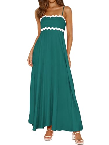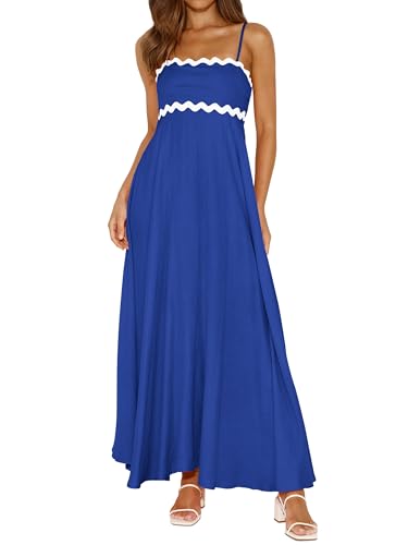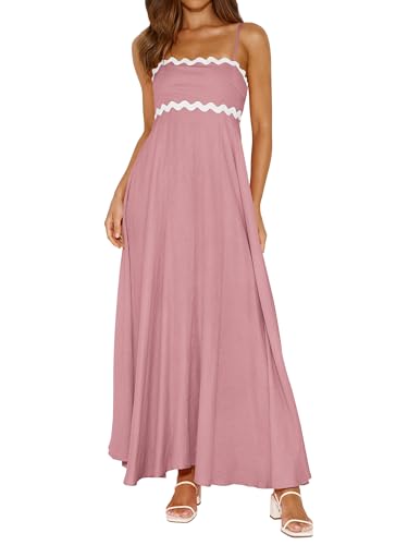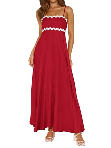 {"about_product": ["Material:This womens maxi dress is made of soft and lightweight fabric,keeping you fresh and comfortable all day long.Size Guide:S=US 4-6, M=US 8-10, L=US 12-14, XL=US 16-18, XXL=US 20.Tips:The top portion is more flattering with a strapless bra and we would recommend wearing lighter color bra or underwear with light-colored dress.", "Features:Summer dresses for women 2025,spaghetti strap dress,elegant square neck dress for women,sleeveless dress for women,long dresses for women casual,a line flowy dresses for women,high waisted boho dress,smocked dress women,fit and flare dress for women,rickrack trim beach dress,vacation dress,bohemian dress for women", "Unique Design:The summer maxi dress with a smocked back allows it to fit different figure types.The rickrack trim adds a touch of playfulness to the overall look.Spaghetti straps and sleeveless design are perfect for hot weather and show off your sexy collarbone.The strips are adjustable so you can get exact length needed.A must have cute dress for summer.", "Easy to Match:Great boho maxi dress to pair with your wedges,flats,strappy heels or sandals for a casual and semi-formal look.You can wear it alone in warm Spring or hot Summer.Simply add a jean jacket,blazer or cardigan to wear as a fall dress.", "Colors:This backless maxi dress is available in several colors.Black maxi dress for women,white spring wedding guest dresses for women,blue casual dresses for women,navy sundresses for women,red boho summer dress,grey pink spring dresses for women 2025"], "product_description": null, "product_information": {"ASIN": "B0CWXKMJ23", "Department": "womens", "Customer Reviews": "4.4 4.4 out of 5 stars \n\n (447)", "Product Warranty": "For warranty information about this product, please click here", "Best Sellers Rank": "#68,605 in Clothing, Shoes & Jewelry (See Top 100 in Clothing, Shoes & Jewelry) #182 in Women's Formal Dresses", "Date First Available": "March 2, 2024"}, "product_details": {"Origin": "Imported", "Fabric type": "100% Polyester", "Closure type": "Pull On", "Care instructions": "Machine Wash"}}
