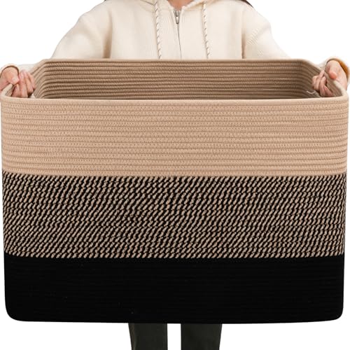 {"about_product": ["108L Blanket Basket for Living Room: This rectangular blanket basket is more stable and easier to restore its shape after you receive the package. The 25’’ x 16’’ x 16\"(108L)large storage basket can also used to store blankets, pillows, cushions, toys, clothes and towels", "100% Cotton Rope Storage Basket:OIAHOMY woven baskets are made of 100% natural cotton, chemical and odor free, there are no sharp or hard edges to scratch floors, and safe for kids and pets. It is more durable than plastic basket", "XXXL Toy Chest With Handles: This woven basket is equipped with sturdy handles, which is sewn with double reinforced threads. It can support heavy objects, or it can be dragged. It is convenient for you to take it from upstairs to the laundry room", "Rectangle woven baskets for storage: OIAHOMY toy storage are soft and sturdy enough, it can be folded to save space when not in use. It is widely used in bedroom, living room, nursery, laundry room and bathroom", "Washable Storage Basket: This large basket can be washed by hand or machine with gentle detergent. If machine washed, please put them into a laundry bag. NOTE: These cotton rope baskets are folded when shipping, but it will turn back to its elegant shape quickly if you fill it with some towels or clothing, and iron is great idea to remove the creases"], "product_description": null, "product_information": {"UPC": "717765828380", "ASIN": "B0CY24M56N", "Shape": "Rectangular", "Style": "Modern", "Finish": "Black", "Capacity": "108 Liters", "Unit Count": "1.0 Count", "Finish Type": "Black", "Item Weight": "4.63 pounds", "Part Number": "FSB-A-J-100L-02B", "Manufacturer": "OIAHOMY", "Handle Material": "Cotton", "Number Of Pieces": "1", "Special Features": "Collapsible, Foldable", "Best Sellers Rank": "#2,156 in Baby (See Top 100 in Baby) #21 in Nursery Bins & Boxes", "Item model number": "FSB-A-J-100L-02B", "Product Dimensions": "24.8 x 15.8 x 15.8 inches", "Batteries Included?": "No", "Batteries Required?": "No", "Included Components": "Handle", "Date First Available": "March 14, 2024", "Item Package Quantity": "1"}, "product_details": {"Brand": "OIAHOMY", "Color": "Gradient Brown", "Material": "Cotton", "Item Weight": "4.63 Pounds", "Product Dimensions": "24.8"L x 15.8"W x 15.8"H"}}