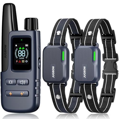 {"about_product": ["【4 Humanized, Effective, Safe Training Modes】Our dog shock collar features 4 humane training modes: beep(1-8 levels), vibration(1-16 levels), safe shock(1-99 levels) and Shock Boost(10% higher). Enables you to set the correct stimulation level for your pet and correct bad behavior promptly.", "【4200FT Range & 2 Channel】The dog training collar covers up to 4200FT providing a stronger and more stable signal, ensuring you can enjoy training time with your dog in the backyard, park, beach or anywhere else. With dual-channel, one remote supports 2 receiver collars, and you can train 2 dogs at the same time! Besides, it has a memory function without resetting it.", "【Fits for 10-120lbs All Sizes of Dogs】Made of skin-friendly and comfortable soft nylon, two-way adjustable strap. This dog training collar with remote fits dogs over 10 lb with neck sizes 7.8-24.4 inches. Dog training collars are suitable for large dogs, medium dogs, and small dogs. The compact collar design ensures a comfortable fit for your furry friend.", "【100% IPX7 Waterproof Compact Receiver】The electric dog collar can be used in any weather and any condition thanks to the IPX7 waterproof design of the receiver. Instant response security on/off switch button allows you to carry it without any fear of accidental touch.", "【Super Long Battery Life and Fast Charging】Upgraded technology, 3-in-1 fast charging only 2 hours to be fully charged. This dog training collar with remote provides battery life that lasts for a long time, the e collar can last up to 35 days of standby time and the remote 45 days!"], "product_description": null, "product_information": {"ASIN": "B0CYBNZR8N", "Size": "All Breed Sizes", "Color": "Green", "Style": "Travel", "Material": "Nylon", "Batteries": "1 Lithium Ion batteries required.", "Brand Name": "Jugbow", "Directions": "1", "Model Name": "DT-612", "Item Weight": "14 ounces", "Manufacturer": "Jugbow", "Number of Items": "2", "Care Instructions": "Clean with damp cloth, avoid extreme temperatures and harsh chemicals, charge remote and collar as needed.", "Item model number": "DT-612", "Included Components": "Remote Control", "Breed Recommendation": "All Breed Sizes", "Date First Available": "March 18, 2024", "Warranty Description": "1", "Age Range Description": "6 months and above", "Item Dimensions LxWxH": "15.75 x 0.79 x 0.04 inches", "Target Audience Keyword": "Dogs, dog", "Specific Uses for Product": "Outdoor", "Item Package Dimensions L x W x H": "6.81 x 6.65 x 2.28 inches"}, "product_details": {"Brand": "Jugbow", "Color": "Green", "Pattern": "Solid", "Material": "Nylon", "Item Display Dimensions": "15.75 x 0.2 x 0.08 x 0.2 inches"}}