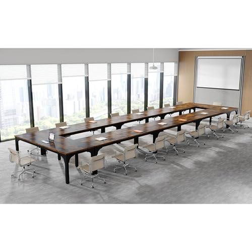 {"about_product": ["【High-Quality and Sturdy Design】: Crafted from premium MDF board, this table is resistant to scratches, waterproof, and easy to clean. The thickened metal frame (leg thickness of 1.96\") with reinforced corners ensures reliable load capacity of up to 980lbs per table. This table distinguishes itself with its superior quality and durability, offering a level of craftsmanship that sets it apart from the rest.", "Large Desktop: Dimension 157.48”*55.11”*29.52”, the large size design optimizes the workspace and offers all the needs the “open space” system of organizing workplaces should meet. Create a unique impression with a sturdy conference table development which can be ordered in combine units to match your seating requirement.", "【Sleek Designs】: Your Meeting table says a lot about the way of working. Sleek designs, minimalistic hardware and easily dismantlable are features that sets this elegant furniture apart for your office and commercial spaces. Customized to size, these tables can be manufactured in harmony with your workspace.", "【Modern & Simple Style Workstation】: Our conference room table is modern and stylish, seamlessly blending with all decor styles and is not easily out of date. The use of finest materials together with attractive brown colour shades will become an icon of perfection in your office.", "【Easy Assembly, Clear Instruction】: The seminar table includes clear assembly instructions, and all parts are labeled for straightforward assembly. Simply follow the steps provided to complete the process with ease. If you meet any issues with this product, please feel free to let us know, and we will respond within 24 hours."], "product_description": null, "product_information": {"ASIN": "B0CYCCRNV9", "Base": "Stainless Steel", "Size": "4PCS", "Color": "Brown", "Shape": "Rectangular", "Base Type": "Leg", "Top Color": "Brown", "Brand Name": "Trggivs", "Item Width": "157.48 Inches", "Model Name": "Conference table", "Is Electric": "No", "Is Foldable": "No", "Item Height": "29.52 inches", "Item Weight": "49 Pounds", "Manufacturer": "Trggivs", "Model Number": "Conference table", "Table Design": "Conference Table", "Material Type": "Engineered Wood", "Extended Length": "157.48 Inches", "Handle Material": "Engineered Wood", "Number of Items": "1", "Furniture Finish": "Stained or varnished brown", "Is Customizable?": "No", "Seating Capacity": "16", "Best Sellers Rank": "#172,098 in Office Products (See Top 100 in Office Products) #41 in Conference Room Tables", "Top Material Type": "Engineered Wood", "Is Stain Resistant": "Yes", "Frame Material Type": "Metal", "Included Components": "Installation Tool", "Base To Top Distance": "29.52 Inches", "Indoor Outdoor Usage": "Indoor", "Is the item resizable?": "No", "Item Dimensions D x W x H": "27.55\"D x 78.74\"W x 29.52\"H", "Product Care Instructions": "Wipe with Dry Cloth for regular cleaning and dusting.", "Specific Uses For Product": "office meetings, commercial spaces", "Minimum Required Door Width": "14 Feet", "Unextended Seating Capacity": "16", "Recommended Uses For Product": "Meeting", "Maximum Weight Recommendation": "980 Pounds", "Tools Recommended For Assembly": "Hammer, Screw Driver, Wrench"}, "product_details": {"Brand": "Trggivs", "Item Weight": "49 Pounds", "Frame Material": "Metal", "Product Dimensions": "27.55"D x 78.74"W x 29.52"H", "Maximum Weight Recommendation": "980 Pounds"}}