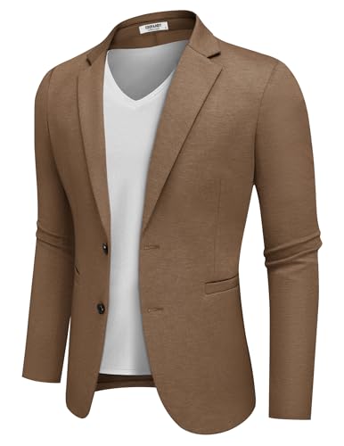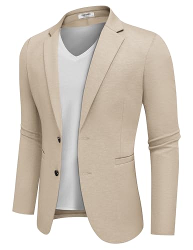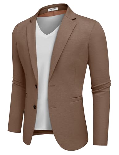 {"about_product": ["Knit Fabric --- Mens casual blazer jacket is made of high quality materials, which is lightweight, breathable, soft, elasticity and not easy to wrinkle, providing great flexibility and comfort in daily life.", "Stylish Design --- This mens slim fit sport coats features notched lapel, two welt pockets, two button closure and four sleeve buttons, showing a modern and stylish looking, it is an indispensable piece of clothing in a man's wardrobe.", "Match Tips --- This men's lightweight blazer can be paired with jeans and a basic T-shirt for a stylish street look, or with suit pants and a dress shirt for a formal business look, which is a good blend of casual and business styles.", "More Occasion --- Mens casual slim fit suit jacket is suitable for business, wedding, dating, meeting, event, office work, ceremony, daily wear, concerts, etc. This mens stretch wrinkle resistant blazer would make an ideal gift for yourself, your husband, son, friend or anyone else.", "Notice ---This mens business dress sports coats is recommended to be machine cleaned or dry cleaned. Please carefully refer to the size chart before purchasing our men's knitted stretch suit jackets."], "product_description": null, "product_information": {"ASIN": "B0DDXQC1RB", "Department": "mens", "Customer Reviews": "4.2 4.2 out of 5 stars \n\n (864)", "Best Sellers Rank": "#18,106 in Clothing, Shoes & Jewelry (See Top 100 in Clothing, Shoes & Jewelry) #3 in Men's Sport Coats & Blazers", "Date First Available": "March 20, 2024"}, "product_details": {"Origin": "Imported", "Fabric type": "70%Polyester,25%Rayon,5%Spandex", "Care instructions": "Machine Wash, Dry Clean Only"}}
