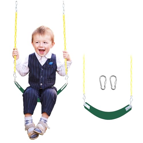 {"about_product": ["♥Material: The swing seat is made of EVA plastic, which is soft and durable enough, and has chemical resistance, corrosion resistance, and crack resistance. The soft shape makes you feel comfortable to use.", "♥Size and Load Capacity: The size of the swing seat is 24” * 5.7 ”, and the weight capacity of the swing can reach 440 pounds, making it the first choice for both children and adults in family playgrounds.", "♥Durable: The two ends of the soft board swing are connected by a metal S-hook, which firmly connects the EVA board, extending the swing's lifespan significantly.", "♥Easy to use: It is easy to connect the swinging hanger. Chains and locks are included. These swings can be used as a replacement for the swing seat of a swing set.", "♥Satisfied:Play swing set for children are essential playground equipment for children. If you are dissatisfied for any reason, please contact us immediately and we will provide a full-refund."], "product_description": null, "product_information": {"UPC": "739608034741", "ASIN": "B0CYSXDKGN", "Brand": "AOBOTE", "Color": "Blackish Green", "Set Name": "2-Pack", "Seat Depth": "25 inches", "Finish Type": "Unfinished", "Item Weight": "2.07 pounds", "Manufacturer": "taizhouzhengtuhuwaiyundongyongpinyouxiangongsi", "Frame Material": "Plastic", "Assembly Required": "No", "Best Sellers Rank": "#38,652 in Toys & Games (See Top 100 in Toys & Games) #37 in Play & Swing Sets", "Item model number": "AB010002-5", "Product Dimensions": "25\"D x 0.2\"W x 5.9\"H", "Date First Available": "March 22, 2024"}, "product_details": {"Brand": "AOBOTE", "Color": "Blackish Green", "Material": "Metal, Stainless Steel", "Item Weight": "0.94 Kilograms", "Product Dimensions": "25"D x 0.2"W x 5.9"H"}}