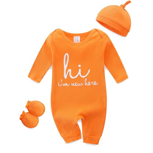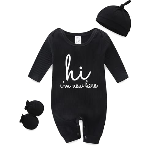 {"about_product": ["Stretchable Material: Our baby solid long sleeve romper is made from 93% cotton and 7% spandex, stretchy enough to make room for your baby to grow. The baby onesie uses a reactive dye process to make it washable and durable, lightweight and breathable. For washing, both machine and hand washes are acceptable, no worry about fading and shrinking.", "Suitable for: Available in sizes 0-3 months (containing premature baby)", "Considerate Design: The baby outfit is designed with buttons under crew neck and snap closures at the crotch, which is easy to change. And the smooth snap design prevents scratching, protecting your little one's delicate skin. The little hat keeps baby head warm and hand covers prevent baby from scratching themselves. \"hi, I'm new here\"letter printed is meaningful for you and your baby.", "Ideal Gift: The package we provided is in a cardboard box that can be used as gift wrapping. And this baby spring/summer/fall/winter romper is simple, practical and high-quality, suitable for birthday gift, holiday gift and so on.", "Package Included: 1* onesie, 1* hat, 1* gloves."], "product_description": null, "product_information": {"ASIN": "B0CZY2RJMD", "Department": "baby-girls", "Customer Reviews": "4.4 4.4 out of 5 stars \n\n (548)", "Best Sellers Rank": "#4,851 in Clothing, Shoes & Jewelry (See Top 100 in Clothing, Shoes & Jewelry) #9 in Baby Boys' Bodysuits", "Date First Available": "April 5, 2024"}, "product_details": {"Origin": "Imported", "Fabric type": "93% cotton/7% spandex", "Care instructions": "Machine Wash"}}