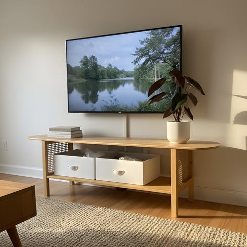 {"about_product": ["Rattan TV Stand to 55\" 60\": The TV console in our picture takes a 32\" TV console as an example. Measuring 55.1x11.8x14.17 inches, this bamboo TV stand can hold up to a 65-inch flat screen TV. Its spacious tabletop isn't just perfect for TVs but also ideal for displaying decorations like photos and vases. Versatile for living rooms and bedrooms, this Tv stand infuses elegance and charm into any room it graces.", "Premium Quality: The Bamboo TV console, designed for versatile placement, offers a blend of functionality and style, making it ideal for different settings. This Mid Century Modern Media Console for Bedroom or Living Room epitomizes durability and elegance. Crafted from durable Bamboo material, media cabinet boasts longevity, resisting cracks and warping.", "Unique Design: Emphasizing safety, the Entertainment Center with Shelf features rounded leg corners to prevent accidental damage and promote a child-friendly environment. Tv stand's triangular stability principle ensures a stable base, combining practicality and aesthetics seamlessly.", "Large Storage: The TV stand features a user-friendly open design, facilitating convenient storage. With two layers of shelves, Mid Century Modern TV stand maximizes space utilization, offering expanded storage options. This thoughtful design approach enhances practicality while providing ample room for organizing your belongings efficiently.", "Easy Assembly: The TV stand includes comprehensive step-by-step instructions for quick and easy assembly, ensuring a straightforward and hassle-free installation process with clear, detailed guidance."], "product_description": null, "product_information": {"ASIN": "B0D1BY7SGF", "Material": "Bamboo", "Item Weight": "24 pounds", "Manufacturer": "Tiita", "Best Sellers Rank": "#78,838 in Home & Kitchen (See Top 100 in Home & Kitchen) #95 in Television Stands", "Item model number": "Bamboo TV Stand", "Product Dimensions": "55.12 x 11.81 x 14.17 inches", "Date First Available": "April 10, 2024", "Product Care Instructions": "Wipe with Damp Cloth"}, "product_details": {"Size": "55.1"l", "Brand": "Tiita", "Color": "Walnut", "Style": "Modern entertainment center", "Item Weight": "24 Pounds"}}