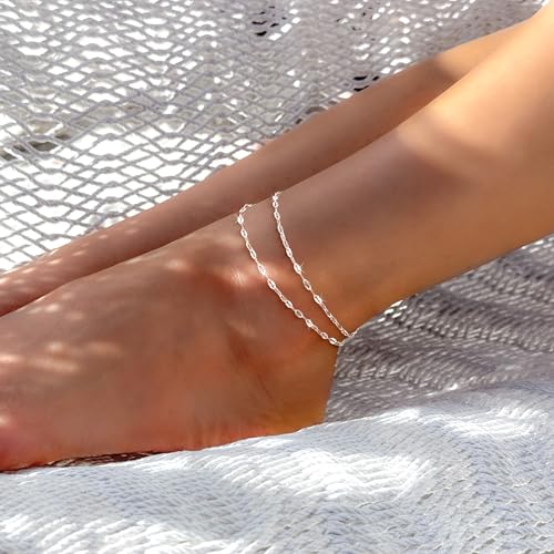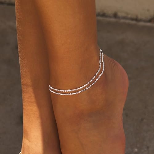 {"about_product": ["Layered Anklet Design: The ankle bracelets for women features a multilayered design that creates a unique and stylish look for your ankles. Exquisite and compact silver/gold flash design can easily match most other designs", "Adjustable Ankle Bracelets: Layered chain ankle bracelets length approx: 8.5\"+2\". The anklet can be adjusted to fit various ankle sizes. And the exquisite lobster buckle design makes the anklet better fixed on the foot", "Hypoallergenic and Waterproof: Our silver/gold ankle bracelets are made from sterling silver/14 k gold plated and waterproof material, this ankle chain lead free, nickel free and hypoallergenic", "Perfect Gifts: This ankle bracelet is perfect for various occasions, and it is also a perfect jewelry gift for birthdays, anniversaries, summer parties, beach vacations, Christmas, Valentine's Day and so on", "Customer Service: If you are not satisfied with the silver/gold anklets for women, please contact us directly and we will help you solve any problems"], "product_description": null, "product_information": {"ASIN": "B0D22M2C33", "Customer Reviews": "4.4 4.4 out of 5 stars \n\n (631)", "Best Sellers Rank": "#55,354 in Clothing, Shoes & Jewelry (See Top 100 in Clothing, Shoes & Jewelry) #30 in Women's Anklets", "Item model number": "2AK-23409", "Date First Available": "April 18, 2024"}, "product_details": {"Gem type": "Cubic Zirconia", "Material": "Metal", "Chain type": "Chain", "Clasp type": "Lobster Claw, Buckle", "Metal type": "Brass", "Item type name": "Anklet"}}