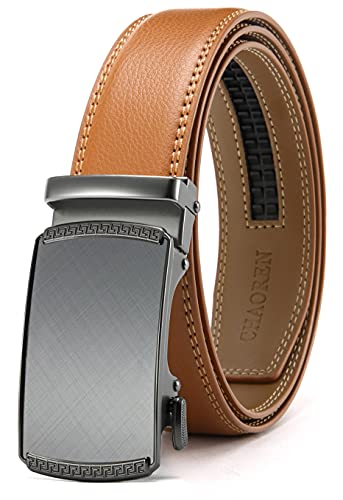 {"about_product": ["Customizable Fit: Achieve the perfect fit with our innovative rachette belt. Enjoy up to 1/5\" adjustments, ensuring a comfortable and precise fit everywhere you go. The easily removable buckle allows you to cut the belt to your ideal size, making it tailored to your unique style. Sharp, sleek, and attractive - adjustable dress belt accentuates your personality with confidence!", "Effortless to Use: Experience the ultimate convenience with our brown leather belt. Simply slide it into the sliding buckle, pull it through, and the click-it buckle automatically locks in place. Releasing the belt is just as easy - gently push the lever on the side of the automatic buckle, and the lock snaps shut. Enjoy the seamless simplicity and smoothness of our ratchet belt design.", "Maximum Durability: Crafted with genuine leatheur men's belts for jeans present a refined and high-textured look. The high-density stylish buckle is not only lighter but also scratch-resistant, ensuring the belt's longevity and durability. Embrace the perfect blend of style and durability with CR!", "Great Choice: Elevate any occasion with the premium experience of CHAOREN. Our fashion design belt complements various outfits and events, making it a thoughtful and stylish belt choice for men. With luxury packaging as standard, make a lasting impression with a CR leather ratchet belt.", "Your Satisfaction Guaranteed: We are dedicated to ensuring our customers' satisfaction. If any issue arises with the product, rest assured that we are here to assist you promptly and without hesitation. Choose CHAOREN for a risk-free and enjoyable shopping experience."], "product_description": null, "product_information": {"ASIN": "B0D8Y3NK62", "Department": "mens", "Manufacturer": "CHAOREN", "Customer Reviews": "4.6 4.6 out of 5 stars \n\n (49,097)", "Best Sellers Rank": "#154 in Clothing, Shoes & Jewelry (See Top 100 in Clothing, Shoes & Jewelry) #1 in Men's Belts", "Item model number": "Leather Belts for Men", "Date First Available": "July 6, 2024", "Is Discontinued By Manufacturer": "No"}, "product_details": {"Origin": "Imported", "Fabric type": "Genuine Leather", "Care instructions": "Dry Clean Only"}}