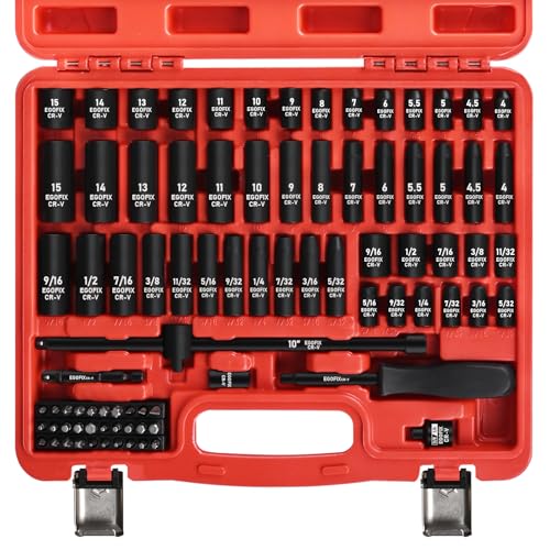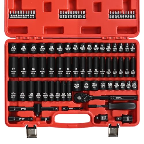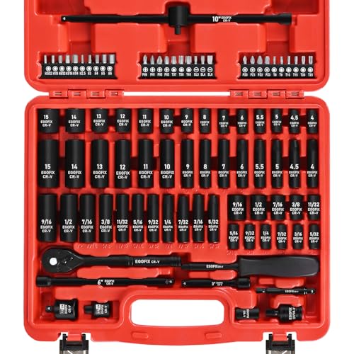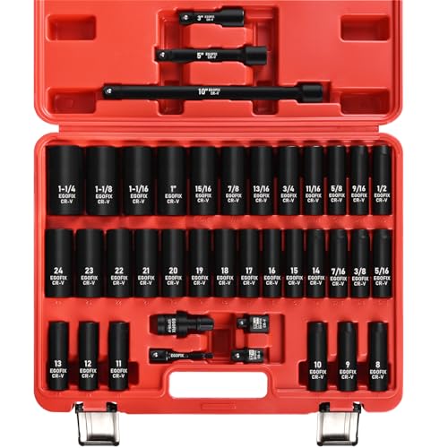 {"about_product": ["【Material Processing】: This 50-piece SAE/metric socket set is made of Chrome Vanadium steel (CR-V), featuring a black phosphoric acid coating on each socket surface to enhance durability and corrosion resistance. Each socket is marked with highly visible engravings, ensuring easy identification even in low-light conditions.", "【Detail size】: The 50pcs 3/8\" socket set includes 28PCS Deep/Shallow metric socket: 8, 9, 10, 11, 12, 13, 14, 15, 16, 17, 18, 19, 20, 21, 22mm; 16PCS SAE socket: 5/16\", 3/8’, 7/16\", 1/2\", 9/16\", 5/8\", 11/16\", 3/4\"; 2PCS extension bar: 3\", 6”; 3/8\" ratchet handle, 3/8” impact universal joint, 1/2” to 3/8” socket adapter, 3/8\" impact grade socket adapter and hex to 1/4\" square drill socket adapter.", "【6-Point Socket Design】: This tool features a 6-point flank drive design that provides a secure grip on fasteners while preventing damage to their corners, effectively minimizing the risk of rounding. It comes with 3\" and 6\" extension bars, plus a 3/8\" impact universal joint that allows access to confined spaces and flexible angle adjustments. The complete set saves time and labor costs, delivering exceptional working efficiency.", "【Organized Storage】: Comes with a Wear-resistant tool box, all sockets are neatly fixed in the box for easy carrying, transportation, safe storage, and quick organization that make you take your set anywhere to meet your job requirements.", "【Widely Use】: This deep socket set is ideal choice for any Home maintenance, Garage and Automobile repair, DIY home improvement. Also this tool set is value gift for men on various occasions like Father's Day, Birthday or anniversary."], "product_description": null, "product_information": {"ASIN": "B0D2X5D8K6", "Size": "3/8\"", "Brand": "EGOFIX", "Color": "50pcs", "Style": "3/8-50PCS", "Finish": "Corrosion-resistant black phosphate finish", "Material": "Chrome Vanadium Steel", "Set Name": "EgoFix 3/8\" Drive Impact Socket Set (50pcs)", "Finish Type": "Corrosion-resistant black phosphate finish", "Item Weight": "10.3 pounds", "Drive System": "6-point", "Manufacturer": "EGOFIX", "Number of Pieces": "50", "Best Sellers Rank": "#1,840 in Tools & Home Improvement (See Top 100 in Tools & Home Improvement) #7 in Socket & Socket Wrench Sets", "Item model number": "eb3d6e0e-3814-4dce-a26b-070d77a2ac07", "Package Dimensions": "14.06 x 10.39 x 2.95 inches", "Batteries Included?": "No", "Batteries Required?": "No", "Bit Compatibilities": "3/8\" drive sockets", "Date First Available": "April 29, 2024", "Drive Bit Shank Style": "3/8\" Hex", "Item Package Quantity": "1", "Compatible Fastener Range": "Fasteners with sizes ranging from 5/16'' (8mm) to 3/4'' (22mm) are compatible with this socket set"}, "product_details": {"Brand": "EGOFIX", "Material": "Chrome Vanadium Steel", "Finish Type": "Corrosion-resistant black phosphate finish", "Drive System": "6-point", "Number of Pieces": "50"}}