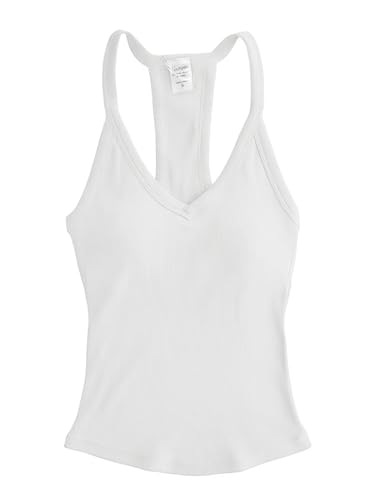 {"about_product": ["Design: Designed as a fitted full-length tank top with a v-neckline and racerback silhouette, it exudes a street-style vibe, perfect for summer outings. This tank top sits below the belly and provides light support, ideal for C-cups and smaller; a supportive bra is recommended for larger sizes.", "Bra-Free Comfort: Our Danysu racerback fitted tank top features removable pads and a double-layered design on the breast area, offering extra support and coverage. Its snug fit holds everything in place, eliminating the need for a bra!", "Cotton Rib Tank: Crafted from a luxurious blend of 46% cotton, 46% rayon, and 8% spandex, our tank top ensures a soft touch and just the right amount of stretch for all-day comfort.", "Matching: This sexy v-neck tank pairs effortlessly with yoga pants, shorts, skirts, leggings, jeans, or sweatpants for a stylish ensemble. Add a cardigan, jacket, or blazer for a chic touch.", "Occasion: Ideal for yoga, pilates, workouts, biking, gym sessions, sports activities, vacations, lounging at home, casual wear, dancing, hiking, beach outings, holidays, and more. Whether it's a sexy going-out top or a simple basic item, this versatile tank top transitions seamlessly from summer to fall or cooler weather as a basic layer."], "product_description": null, "product_information": {"ASIN": "B0D36D39P6", "Department": "womens", "Customer Reviews": "4.2 4.2 out of 5 stars \n\n (2,437)", "Product Warranty": "For warranty information about this product, please click here", "Best Sellers Rank": "#5,439 in Clothing, Shoes & Jewelry (See Top 100 in Clothing, Shoes & Jewelry) #15 in Women's Tanks & Camis", "Date First Available": "May 2, 2024"}, "product_details": {"Origin": "Imported", "Fabric type": "46%Cotton, 46%Rayon, 8%Spandex", "Closure type": "Pull On", "Care instructions": "Hand Wash Only"}}