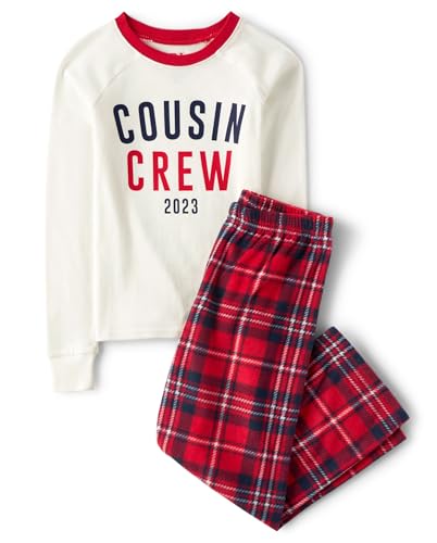 {"about_product": ["FABRICATION: 100% cotton jersey top, 100% polyester microfleece pants; imported", "PAJAMA TOP: Crew neck, long raglan sleeves, 'Cousin Crew' graphic, banded cuffs", "PAJAMA PANTS: Pull-on elasticized waistband, banded leg cuffs, plaid print", "NOTE: For child's safety, garment should fit snugly or be flame resistant. This garment is flame resistant.", "THE CHILDREN'S PLACE — We offer a huge selection of kid's clothing! Shop us for jeans, shorts, leggings, chinos, polo shirts, dresses, pajamas, and accessories."], "product_description": "The Children’s Place offers a huge selection of kid's clothing! Shop us for jeans, shorts, leggings, chinos, polo shirts, dresses, uniforms, pajamas, and accessories. Made with premium quality materials at a great value. Kids clothing made simple.", "product_information": {"ASIN": "B0DYDCXT8V", "Department": "unisex-child", "Manufacturer": "The Children's Place", "Customer Reviews": "4.7 4.7 out of 5 stars \n\n (1,902)", "Best Sellers Rank": "#859 in Clothing, Shoes & Jewelry (See Top 100 in Clothing, Shoes & Jewelry) #5 in Baby Girls' Pajama Sets", "Date First Available": "February 25, 2025"}, "product_details": {"Origin": "Imported", "Fabric type": "100% Polyester", "Care instructions": "Machine Wash"}}