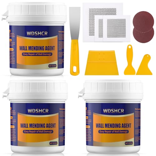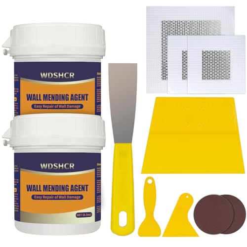 {"about_product": ["Complete Repair Kit: Contains 1 pieces repair putty(8.5oz), 2 inch wall repair patches(2pcs), 4 inch wall repair patches(1pcs), 2 pieces of sandpaper, and 4 plastic scrapers.", "Waterproof Formula: The drywall repair kit contains a waterproof wall mending agent that dries quickly and leaves no residue.", "Strong Adhesion: Drywall repair patches are made from quality aluminum, making them lightweight yet strong and durable for long-lasting performance.", "Multipurpose: Wall repair patch is suitable for repairing most damaged surfaces around the home, kitchen, or office building, as well as factories and other industrial facilities.", "Ideal for DIY home renovations: Whether you're an experienced pro or a beginner, our wall patch repair kit makes wall repair a breeze, enhancing the beauty of your home."], "product_description": null, "product_information": {"ASIN": "B0D54PV3RW", "Brand": "WDSHCR", "Color": "1Pack", "Item Form": "Patch, Putty", "Viscosity": "Medium to High Viscosity", "Unit Count": "8.5 Ounce", "Item Volume": "250 Milliliters", "Item Weight": "15.8 ounces", "Manufacturer": "WDSHCR", "Full Cure Time": "12 Hours", "Viscosity Level": "Medium to High", "Best Sellers Rank": "#1,230 in Tools & Home Improvement (See Top 100 in Tools & Home Improvement) #4 in Wall Surface Repair Products", "Item model number": "WDSHCR", "Product Dimensions": "5.5 x 5.5 x 2.3 inches", "Batteries Required?": "No", "Included Components": "Drywall Repair Kit", "Package Information": "Patches", "Date First Available": "May 24, 2024", "Item Package Quantity": "1", "Water Resistance Level": "Waterproof"}, "product_details": {"Brand": "WDSHCR", "Color": "1Pack", "Item Form": "Patch, Putty", "Package Information": "Patches", "Item Package Quantity": "1"}}