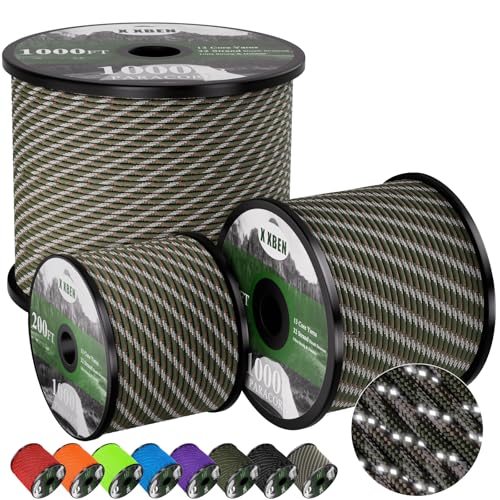 {"about_product": ["Upgraded 1000lb Paracord: Made of polyester, diameter 4mm, with 32 strands of sheathed structure and 13 inner yarns of triple polyester fibers. Our heavy duty parachute rope for camping has a minimum breaking force of 1000 pounds/453kg by profesional tension test, which can withstand more 450 pounds force than those rope 550lb with7 inner yarns. Warm Tips: 13 inner yarns can be taken out to use.", "Say Goodbay to Tangle: Our survival paracord ropes are designed with a storage bag based on different sizes. Wherever you go, you can put it in backpack or trunk, or hold it in hand, carrying it easily with no worry for tangle or mess.", "Multi-purpose Reflective Paracord: It is designed with reflective strips, reflecti light at night for your safe. Our cord can be used as a rope to hold tents, or as clothesline, fishing line, sewing threads, and for fixing hammocks, tying items like firewood, shoelaces replacement, emergency safety ropes, etc. It can also be used for DIY items like survival bracelets, dog collars, pet leashes or others.", "Strong & Enduring: The army green paracord 100ft tent rope have strong tensil strength and stay resistant to wear and UV light, because of its fine weaving craft and high quality material. Our paracord can also keep strong after withstanding rain, snow, hot sun and other extreme weather.", "Indoor Outdoor Must Have: Our paracord string outdoor is suitable for camping, hiking, boating, fishing, adventure or other extreme sports, and can be as daily household items. For those who love outdoor activities, sports, DIY handmade, our paracord is your best choice."], "product_description": null, "product_information": {"ASIN": "B0D5B9BS5T", "Brand": "X XBEN", "Color": "Army Green", "Style": "Utility Cord", "Material": "Polyester", "Unit Count": "100.0 Feet", "Item Length": "1200 Inches", "Item Weight": "4 ounces", "Line Weight": "1000 Pounds", "Manufacturer": "X XBEN", "Item Diameter": "0.13 Inches", "Item Thickness": "0.13 Inches", "Number of Items": "1", "Tensile Strength": "1000 Pounds", "Best Sellers Rank": "#1,652 in Sports & Outdoors (See Top 100 in Sports & Outdoors) #5 in Tactical Paracord", "Item model number": "X XEBN111301", "Date First Available": "July 16, 2024", "Maximum Tension Load": "1000 Pounds", "Recommended Uses For Product": "Camping, Crafting, Outdoor Activities, Survival"}, "product_details": {"Brand": "X XBEN", "Color": "Army Green", "Style": "Utility Cord", "Material": "Polyester", "Item Weight": "4 Ounces"}}