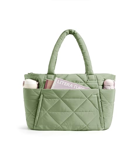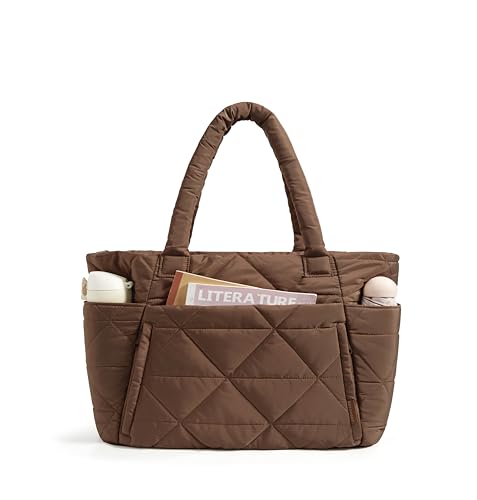 {"about_product": ["The Trend Era of Puffer Bag is Approaching: \"A puffer bag can effortlessly complement various outfits,\" says Brenda Iris, image consultant, stylist, and founder of Mindful Styling in Minneapolis, Minnesota.", "Multi-Pocket: Size - 15.7''L x 13''Wx 6'H. This women tote bag with 2 front zippered pockets, 1 magnetic-closure exterior pocket, 2 side pockets and a large two-layer compartments, be suitable for 15.6'' laptops, Umbrella, water cup, power banks, clothes, shoes, etc.", "Ultra Light and Soft Materials: Weighs only 0.97 pounds. Made of durable, soft and light taslan fabric. The puffer tote bag is easy to carry. Good choice of travel bag.. Also a reliable, functional, and fashionable handbag. Efinitely an ideal gift for yourself, your family, and your friend.", "Easy to Use: The soft handle enhances the user's sense of use, whether it's a handbag or a shoulder bag, you won't feel too much pressure. Puffy material is not only designed for a beautiful appearance, but also effectively protects built-in electronic devices or other fragile items.", "Versatile Tote: It can be used as a duffle bag,work bag, laptop bag, gym bag, beach tote bag, casual shoulder bag, or travel bag. Suitable for work, beach, study, travel, shopping, gym and more occassion."], "product_description": null, "product_information": {"ASIN": "B0D6FRFH3T", "Department": "Women", "Customer Reviews": "4.7 4.7 out of 5 stars \n\n (812)", "Product Warranty": "For warranty information about this product, please click here", "Best Sellers Rank": "#1,071 in Clothing, Shoes & Jewelry (See Top 100 in Clothing, Shoes & Jewelry) #5 in Women's Tote Handbags", "Product Dimensions": "15.7 x 6 x 13 inches; 15.84 ounces", "Date First Available": "June 7, 2024"}, "product_details": {"Origin": "Imported", "Fabric type": "Polyester fibre"}}
