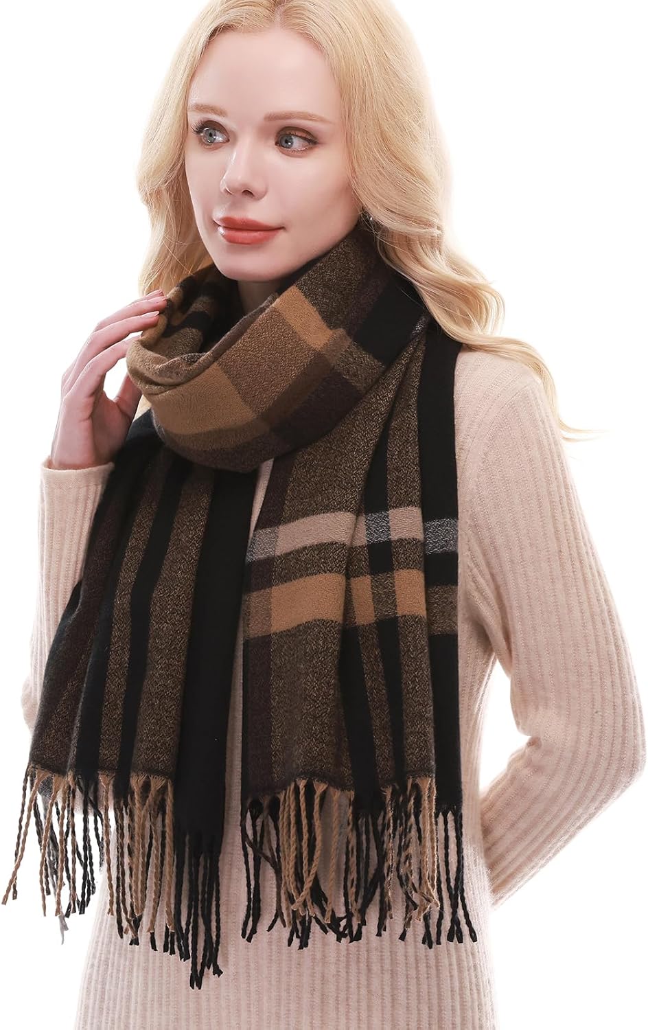 {"about_product": ["Material: RIIQIICHY women scarf is made of high quality polyester blended fabric, soft and cozy, good hand feel like cashmere scarf.This Plaid scarf is perfect for a chilly outdoor night in fall and winter.", "Size: The warm scarf in size 76\" x 26\"(including fringes). The oversized scarf can be wore as a scarf, shawl or wrap for women.", "Usage: The scarf is ideal as a shawl wrap for evening dresses or wedding party, and great as a warm scarf during cold winter. These scarves are perfect for matching any outfits in the daily life, travel, evening party, wedding, prom party or any other festivals.", "Gifts for women: The scarf is a good gift to your family, friends and even yourself in Thanksgiving, Christmas, Birthday, Mothers day or some special days.", "Wash tips: Hand wash in cold water. Please do not bleach. Could wash individually by using hair shampoo. Squeeze gently and do not twist. Please dry in shade and keep flat."], "product_description": "", "product_information": {"ASIN": "B0D6R2JJ6V", "Department": "womens", "Customer Reviews": "4.5 4.5 out of 5 stars \n\n (277)", "Product Warranty": "For warranty information about this product, please click here", "Best Sellers Rank": "#1,652 in Clothing, Shoes & Jewelry (See Top 100 in Clothing, Shoes & Jewelry) #6 in Women's Wraps & Pashminas", "Date First Available": "June 11, 2024"}, "product_details": {"Origin": "Imported", "Fabric type": "70% Polyester 30%Viscose", "Care instructions": "Hand Wash Only"}}