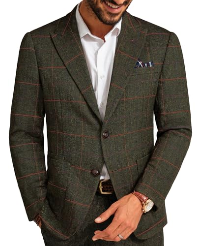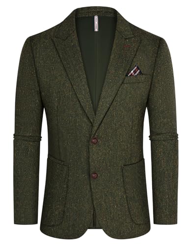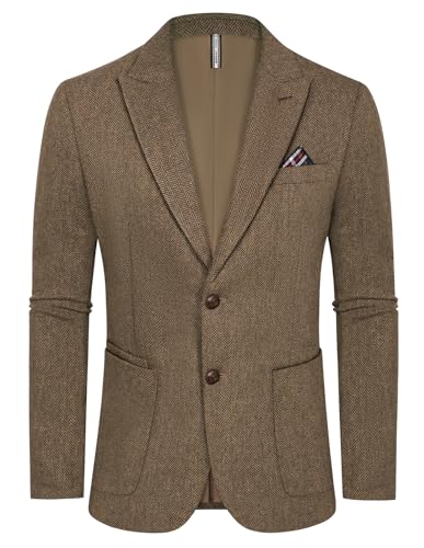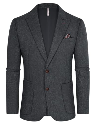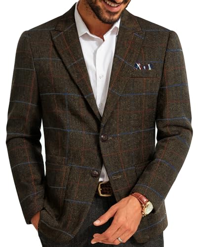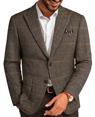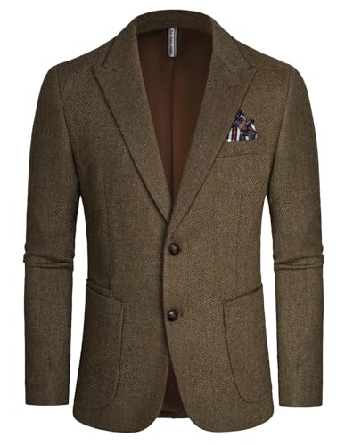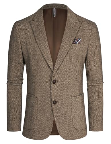 {"about_product": ["Premium Fabric: Wool Blend for Ultimate Comfort - Crafted from a premium blend of 75% Polyester and 25% Wool, this sport coat provides warmth and comfort while maintaining breathability. Perfect for fall and winter, this blazer ensures you stay comfortable and stylish throughout the day", "Timeless Style: Vintage Herringbone Tweed Design - This men's blazer features stylish peaked lapel and a classic herringbone tweed pattern design for a timeless and unique look. The removable pocket scarf on the chest pocket adds a touch of sophistication and elegance to your overall look", "Functional Pockets: Convenience and Style Combined - Featuring multiple available pockets, including 1 chest pocket, 3 patch pockets at the front, 2 inner pockets, this blazer provides both convenience and style. Keep your essentials close at hand while maintaining a polished appearance", "Versatile Fit: Suit for Various Occasions - Featuring two-button and modern fit design , this wool blend blazer is perfect for a variety of occasions, from formal events to casual outings. Pair it with dress pants for a sharp look or with jeans for a more relaxed style, offering versatility in your wardrobe", "Notice: To Choose the most appropriate size, please check the size chart before purchasing our men's blazer"], "product_description": null, "product_information": {"ASIN": "B0D83H9RDH", "Department": "mens", "Customer Reviews": "4.2 4.2 out of 5 stars \n\n (302)", "Product Warranty": "For warranty information about this product, please click here", "Best Sellers Rank": "#15,480 in Clothing, Shoes & Jewelry (See Top 100 in Clothing, Shoes & Jewelry) #2 in Men's Sport Coats & Blazers", "Date First Available": "June 26, 2024"}, "product_details": {"Origin": "Imported", "Fabric type": "75% Polyester, 25% Wool", "Care instructions": "Machine Wash"}}