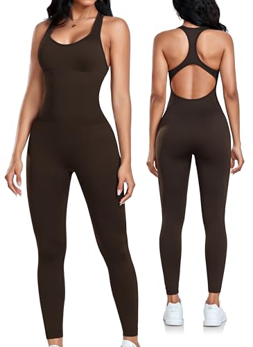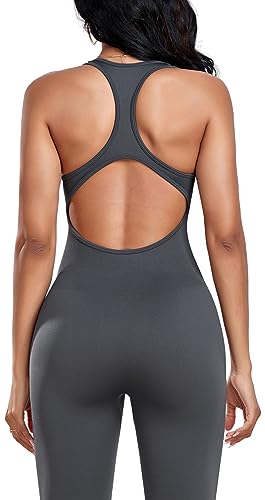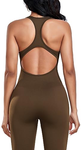 {"about_product": ["Stretchy And Breathable: The seamless bodycon jumpsuits are 90% Polyamide and 10% Elastane. Very breathable and good at moisture absorbing and sweat releasing. High elastic with four-way stretch keeps freedom of movement, promotes compression to your body, not too tight and cut into your body. Perfectly fit, smooth, comfy to wear, and not see through.", "Open Back And Low Cut: With racerback cut-out design and low round neck, the sleeveless rompers can show off your elegant neck line, breast curves, and beautiful back. Very sexy and flattering to wear.", "Body Shaping: The one piece leggings bodysuits with ribbed knit on the waist is designed for tummy control, butt lift, and waist cinching, to help better shape your body. Padded bras are very supportive, with removable pads easy to take out and put in.", "Occasions: The fashion onesies are suitable for any active occasion, workout, yoga, gym, pilates, running, jogging, dancing, tennis, golf, bowling, and other fitness, or even for daily casual wear with right accessories, jackets, and coats.", "Color And Size: Five colors for your choice: black, grey, brown, blue, and purple. Three sizes are available, please choose according to our size chart."], "product_description": null, "product_information": {"ASIN": "B0DNJH7JWT", "Department": "Women", "Manufacturer": "OLCHEE", "Customer Reviews": "4.3 4.3 out of 5 stars \n\n (955)", "Best Sellers Rank": "#4,278 in Clothing, Shoes & Jewelry (See Top 100 in Clothing, Shoes & Jewelry) #3 in Women's Jumpsuits", "Item model number": "JS-1", "Date First Available": "April 21, 2023"}, "product_details": {"Origin": "Imported", "Fabric type": "90% Nylon, 10% Elastane", "Care instructions": "Machine Wash"}}