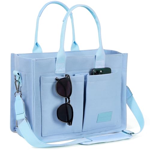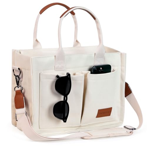 {"about_product": ["3 Sizes Available: M (13\"L×6\"W×9.8\"H) fits tablet, wallet, small bottle—ideal for errands; L (15\"L×7.3\"W×10.8\"H) holds 15.6\" laptop, 30 oz container, work docs—great for commutes; XL (16.9\"L×7.3\"W×12\"H) accommodates 17.3\" laptop, 40 oz bottle—perfect for travel.", "Multi Individual Pockets: the tote purse features multi independent compartments, making it easy to organize your personal items. Besides, all dividers are sewn to the bottom to ensure you stay organized all day without worrying about items rolling around", "Top Zipper Closure & Thick Bottom Support: the work tote bag is designed with top zipper to keep your belongings safe and secure. Besides, the reinforced thick bottom provides stability and can easily hold heavier items without losing its shape", "Robust Canvas Material & Detachable Shoulder Strap: the everything tote is made with high-quality canvas fabric, sturdy & strong. Besides, comes with a detachable shoulder strap, it allows you to carry it comfortably as a hand tote or wear it crossbody", "Perfect for Any Occasion: Whether for work, college, travel, or shopping, the canvas tote bag is the ideal companion, combining style and functionality. And it’s also an ideal gift for your girlfriends, classmates, colleagues, families, etc"], "product_description": null, "product_information": {"ASIN": "B0D97XYN41", "Department": "Unisex", "Manufacturer": "FIORETTO", "Customer Reviews": "4.5 4.5 out of 5 stars \n\n (1,241)", "Product Warranty": "For warranty information about this product, please click here", "Best Sellers Rank": "#1,785 in Clothing, Shoes & Jewelry (See Top 100 in Clothing, Shoes & Jewelry) #5 in Travel Tote Bags", "Item model number": "FD6W24053", "Product Dimensions": "6.29 x 9.84 x 13.38 inches; 1.27 Pounds", "Date First Available": "July 11, 2024"}, "product_details": {"Origin": "Imported", "Fabric type": "Fabric: 60% Cotton, 40% Polyester; Lining: 100% Polyester", "Care instructions": "Hand Wash Only"}}