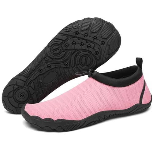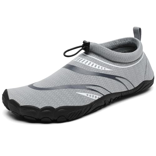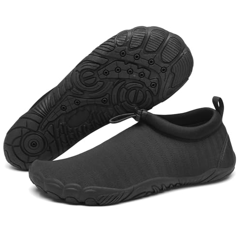 {"about_product": ["BREATHABLE FABRIC: The upper of mens water shoes are made with stretchy, breathable, ultra-lightweight fabric, which for fast draining and cross ventilation, give excellent flexible and comfortable.", "WIDE TOE BOX DESIGN: Mens barefoot water shoes are designed with wide five-toe toe box, which to keeps the toes from being squeezed, and an impact-resistant toe design to protect toes from injury.", "QUICK ADJUSTMENT: Womens barefoot shoes feature a unique elastic drawstring design for quick adjustments and easy to put on and take off.", "RUBBER OUTSOLE: Mens barefoot shoes are with non-slip rubber outsole, it is wear-resistant and durable, that provides good grip and the zero drop sole gives you the feeling of walking barefoot, . Also Beach shoes have good flexibility, can be folded at will and not easy to deformation, you can easily store and carry them.", "Occasion: Mishansha barefoot water shoes are suitable for kinds of water sports, such as water hiking, beach, swim pool, kayaking, surfing, diving, boating, fishing, rafting, upstream,etc. Also perfect for jogging, trail running, walking, gym, yoga, fitness, training, athletics, etc outdoor sports."], "product_description": null, "product_information": {"ASIN": "B0DLNWXS62", "Department": "mens", "Manufacturer": "Mishansha", "Customer Reviews": "4.4 4.4 out of 5 stars \n\n (1,217)", "Product Warranty": "For warranty information about this product, please click here", "Best Sellers Rank": "#25,809 in Clothing, Shoes & Jewelry (See Top 100 in Clothing, Shoes & Jewelry) #17 in Men's Water Shoes #13,102 in Women's Fashion", "Item model number": "barefoot water shoes", "Date First Available": "November 1, 2024"}, "product_details": {"Origin": "Imported", "Closure type": "Pull-On", "Sole material": "Natural Rubber", "Outer material": "Polyester"}}