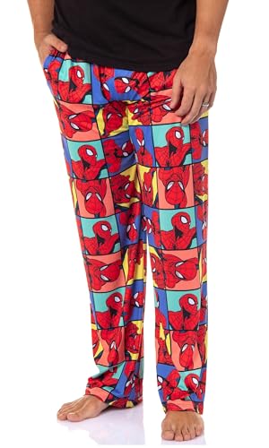 {"about_product": ["Heroic Design: This all-over print features Marvel superheroes like Hawkeye, The Wasp, Captain America, Hulk, Black Panther, Thor, and more, along with dynamic comic book onomatopoeias.", "Comfortable Fit: Made from 95% polyester and 5% Spandex, these pajama pants offer a soft and flexible feel for ultimate comfort. Listed in men's sizing, but made for all older fans. For visual reference, the model is 6ft 1in and wearing a size medium.", "Adjustable Waistband: The 2\" elastic waistband with an adjustable drawstring ensures a great fit for all-night comfort.", "Practical Pockets: Includes 2 side seam pockets for conveniently storing small essentials.", "Functional Details: Features a straight leg silhouette and a 1-button fly for ease and practicality."], "product_description": "Unleash your inner superhero with the Marvel Comics Men's Sleep Lounge Pajama Pants! Whether you're a fan of Spider-Man, Iron Man, or the entire Avengers team, these pajama pants are designed to bring the action-packed world of Marvel right into your home. Crafted with comfort and style in mind, they feature a 2-inch elastic waistband with an adjustable drawstring for a great fit, a convenient 1-button fly, and two side seam pockets to keep your essentials close. The straight-leg silhouette offers a relaxed fit, making them ideal for lounging around the house or catching some Z's. Choose from a variety of Marvel designs and transform your downtime into an epic adventure!", "product_information": {"ASIN": "B0DB9GTK6K", "Department": "mens", "Manufacturer": "Mad Engine", "Customer Reviews": "4.8 4.8 out of 5 stars \n\n (100)", "Product Warranty": "For warranty information about this product, please click here", "Best Sellers Rank": "#15,076 in Clothing, Shoes & Jewelry (See Top 100 in Clothing, Shoes & Jewelry) #80 in Men's Pajama Bottoms", "Item model number": "MVRCBKFMNP", "Product Dimensions": "12 x 9 x 1 inches; 10.08 ounces", "Date First Available": "July 25, 2024"}, "product_details": {"Origin": "Imported", "Fabric type": "95% Polyester, 5% Spandex", "Care instructions": "Machine Wash"}}