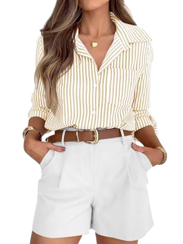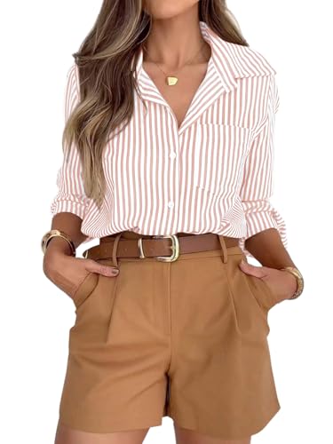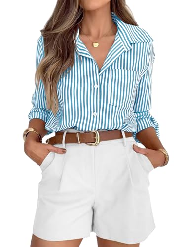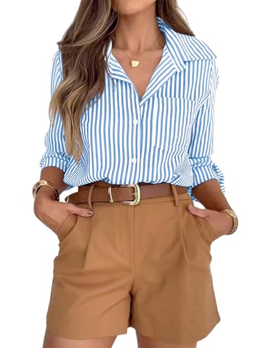 {"about_product": ["Wrinkle-Free and Breathable: This high-quality striped shirt women is made from a wrinkle-free, non-iron, breathable fabric. The V-neck design with fashionable stripes enhances your charm effortlessly", "Stylish Design: Featuring a button up front, collared neck, chest pocket, curved hem, old money style, this cotton striped dress shirt combines functionality with a classic regular fit cut, showcasing your fashion and charm", "Multiple Ways to Wear: The long sleeve womens button down shirt is suitable for all seasons. These stripe blouses for women fashion can be rolled up for a cool laid back style, casual long sleeve button down shirts make you look more chic, stylish and sexy", "Versatile Fashion Matching: Our stylish button down shirts for women are a casual must-have. Pair button up shirt women with jeans, shorts, skirts, or tank tops for a casual look, or with blazers, trousers, and heels for a stylish and elegant ensemble", "Perfect for Any Occasion: Ideal for office, work, business meetings, casual outings, beach holidays, Thanksgiving, Christmas, and parties. Dress shirts for women can be worn alone or as a jacket, making it a versatile addition to your wardrobe"], "product_description": null, "product_information": {"ASIN": "B0DBPLG6DH", "Department": "womens", "Customer Reviews": "4.2 4.2 out of 5 stars \n\n (1,774)", "Best Sellers Rank": "#8,066 in Clothing, Shoes & Jewelry (See Top 100 in Clothing, Shoes & Jewelry) #20 in Women's Button-Down Shirts", "Date First Available": "July 31, 2024"}, "product_details": {"Origin": "Made in USA or Imported", "Neck style": "V-Neck", "Fabric type": "Cotton Blend", "Closure type": "Button"}}