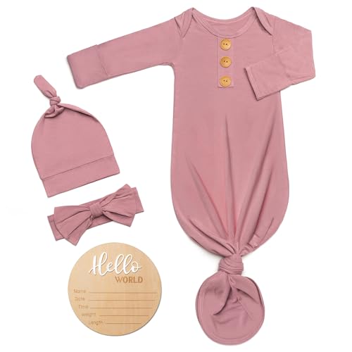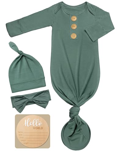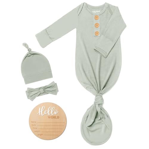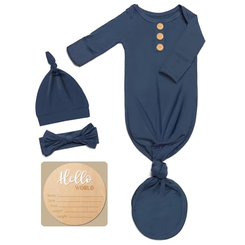 {"about_product": ["Premium Fabric: Our baby kontted gown are 95% Viscose derived from Bam boo and 5% Spandex, offering ultimate softness, breathability, and moisture-wicking properties. Perfect for keeping your baby cool in summer and cozy in winter, while reducing the risk of skin irritations.", "Newborn-Friendly Design: The long sleeve newborn onesies feature an easy-access bottom for hassle-free diaper changes. Adjustable length and built-in fold-over mittens keep your baby safe from scratches and provide added warmth. The matching hat and Headband complete the cute and practical outfit.", "Perfect for Gifting: This baby noah baby sleeper gown set makes an ideal gift for newborns, baby showers, and special occasions. Whether it’s a coming-home outfit, holiday present, photoshoot outfits,or a baby shower gift, parents will love the softness and functionality of this gown.", "Convenient 4-Piece Set: Each package includes 1 soft baby knotted gown,1 matching baby hat, 1 Headband and 1 Personalized Wooden Name Tag . Available in various colors, it’s perfect for newborn photos, everyday wear, and even special occasions like family gatherings or celebrations.", "Easy Care & Durability: Designed for busy parents, these baby onesies set is machine washable on a gentle cycle. Made to last and retain their softness, they are both practical and luxurious for your little one’s wardrobe."], "product_description": null, "product_information": {"ASIN": "B0DCHGYFXC", "Department": "Unisex Baby", "Manufacturer": "Baby Noah", "Customer Reviews": "4.7 4.7 out of 5 stars \n\n (258)", "Product Warranty": "For warranty information about this product, please click here", "Best Sellers Rank": "#34,490 in Clothing, Shoes & Jewelry (See Top 100 in Clothing, Shoes & Jewelry) #3 in Baby Boys' Nightgowns", "Item model number": "LWgownZMNK-1", "Package Dimensions": "11 x 8 x 0.72 inches; 5 ounces", "Date First Available": "August 8, 2024"}, "product_details": {"Origin": "Imported", "Fabric type": "95% Viscose, 5% Spandex", "Care instructions": "Hand Wash Only"}}