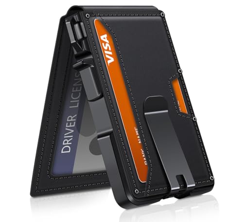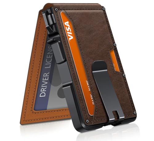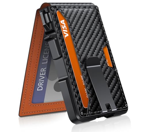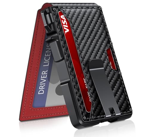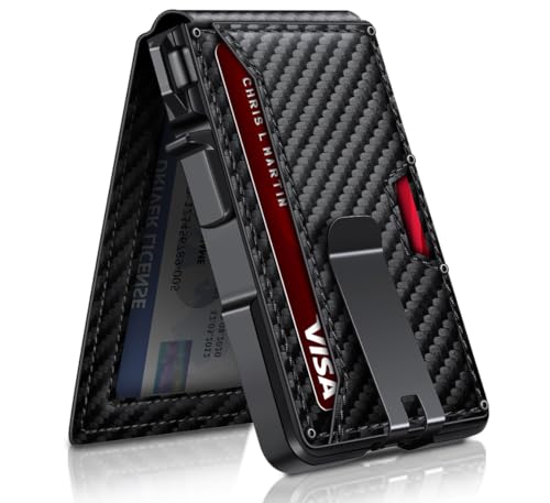 {"about_product": ["QUICK ACCESS: Unlike traditional leather wallet, this mens slim wallet is equipped with the ejection mechanism. Simply press the side button on the card holder, all cards pop up at a step pattern that makes them very easy & convenient to take out.", "SLIM BODY, LARGE CAPACITY: This mens minimalist wallet holds up to 12+ cards. The aluminium chamber holds 6-8 and the leather flap holds 4-6 (1 ID window included). There are also removable money clips on the back capable of holding 15+ cash.", "CLEAR ID WINDOW: On the inside of the carbon fiber wallet, which has an ID card holder slot, which allows you to swipe the card without removing the card. It can be used to store ID card, work card, driver license, access card, traffic card, etc.", "RFID BLOCKING: This rfid wallet for men embeds a chip in the aluminum card case to block unknown scanning devices from scanning your credit cards, debit cards, and driver's licenses, maximizing the protection of your personal property.", "PERFECT PRESENT IDEA: This leather wallet is packaged in a beautiful premium box and it is great choice for men. It is a perfect credit card wallet for your friend, lover, parent or yourself on special Days."], "product_description": null, "product_information": {"ASIN": "B0DCRZ5P2H", "Department": "Unisex Adult", "Item Weight": "150 Grams", "Manufacturer": "ZALVEX", "Best Sellers Rank": "#924 in Clothing, Shoes & Jewelry (See Top 100 in Clothing, Shoes & Jewelry) #13 in Men's Wallets", "Item model number": "V09", "Product Dimensions": "2.7 x 1.9 x 0.5 inches"}, "product_details": {"Brand": "ZALVEX", "Color": "Carbon Fiber", "Style": "Compact, Slim & Sleek", "Pattern": "Solid", "Material": "6063 Space Grade Aluminum & Carbon Fiber"}}