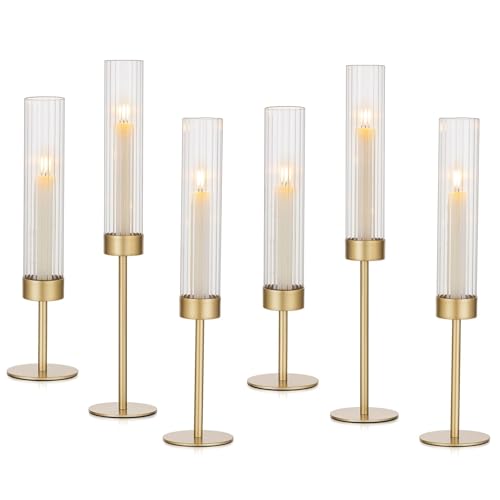 {"about_product": ["Windproof Candle Holders: Our candle stick holder is simple yet elegant and extremely well made. The removable hurricane glass combined with a weighted metal base make them ideal for indoor / outdoor use, protecting the flame and ensuring candlestick remains upright. Assembly is effortless, adding a touch of elegance to any centerpiece", "Elegant Candle Holders: These glass candlestick holder feature a ribbed glass design that beautifully accentuates the glow of candlelight. Each candle holder set is of a simple yet stunning design and includes 3 different height, allowing you to personalize your candle arrangements to suit your preferences and create the perfect centerpiece", "Perfect for Any Occasion: The glass candle stick candle holder are ideal choice for events decoration, can be decorated for birthday, party, holidays, weddings and other celebrations. Their gorgeous looking elevates the decor of coffee table, dining table, living room, mantel and patio, infusing every corner of your home with a touch of refined charm and elegance", "Ideal Size for Decor: Set of tapered candlestick holders in 3 assorted heights: 13.6\", 15.7\", and 17.7\" (including hurricane height). The candle hole diameter measures 0.87\", fits 7/8\" tapered candles or LED flameless candles. Surrounding the base with floral arrangements or seasonal decorations will add a unique visual dimension to your décor", "Great Packaging & Service: Hurricane candle holders for table centerpiece are carefully packaged to prevent damaging from transportation. If you have problems about product details or quality issues, just reach us, our service team will always on standby. Hewory candle holders would be your top option"], "product_description": null, "product_information": {"ASIN": "B0DCVS9ND8", "Brand": "Hewory", "Color": "Matte Gold", "Theme": "Wedding, Centerpiece, Holidays, Christmas, Party, Dinner, Gift", "Material": "Glass, Metal", "Occasion": "Birthday, Christmas, Thanksgiving, Valentines Day, Wedding And Engagement", "Finish Type": "Polished", "Item Weight": "2.9 pounds", "Item Diameter": "0.86 Inches", "Mounting Type": "Tabletop", "Number of Pieces": "3", "Best Sellers Rank": "#28,994 in Home & Kitchen (See Top 100 in Home & Kitchen) #28 in Candlestick Holders", "Product Dimensions": "14.96\"L x 9.84\"W x 2.95\"H", "Date First Available": "September 26, 2024"}, "product_details": {"Brand": "Hewory", "Color": "Matte Gold", "Material": "Glass, Metal", "Finish Type": "Polished", "Product Dimensions": "14.96"L x 9.84"W x 2.95"H"}}