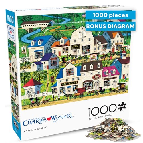 {"about_product": ["HIGH QUALITY JIGSAW PUZZLE: Our 1000-piece jigsaw puzzles are crafted using sturdy puzzle board with interlocking pieces that snap together for a secure fit. Our Puzzles feature high-resolution artwork. Finished size is an impressive 26.75” x 19.75”.", "FUN AND RELAXING ACTIVITY: Puzzling is an excellent activity that promotes focus and relaxation. Whether puzzling solo or with friends and family, cozy up for an engaging and serene activity that is great for mental health, relaxation and quality time.", "FULL-SIZED POSTER: Buffalo Games 1000-piece puzzles include a large, full color, reference poster to assist with assembly.", "GREAT GIFT: This 1000 Piece Jigsaw puzzle makes for an ideal and thoughtful gift for puzzle enthusiasts and beginners alikescreen-free. Puzzling is an ideal activity for family game nights and encourages quality, time together offering a fun and mentally stimulating challenge.", "MADE IN THE USA: Buffalo Games 1000-piece puzzles are proudly made in the USA."], "product_description": "“Whistle Stop Christmas” by Charles Wysocki is a delightful 1000-piece jigsaw puzzle from Buffalo Games. Travelers coming and going gather at the Quail Ridge Landing train station with luggage and Christmas presents as they prepare to spend the holidays with family and friends. This nostalgic throwback to the days of steam engines and locomotive travel will make you long for a simple, classic Christmas of your own. For more than 40 years Charles Wysocki enjoyed his love affair with life and Americana, and through his imaginative and colorful artwork, touched the hearts of millions worldwide. \"Chuck\" felt a special kinship with puzzlers who share in the creative process by building his paintings one piece at a time. Every Buffalo Games jigsaw puzzle is manufactured from recycled puzzle board. A precision cutting technique guarantees that every piece will fit soundly with the company's signature Perfect Snap™. A bonus puzzle poster is also included so that you have a handy reference of what the completed puzzle should look like while you put yours together.", "product_information": {"ASIN": "B0DFYXPRY6", "Item Weight": "1.23 pounds", "Manufacturer": "Buffalo Games", "Release date": "September 3, 2024", "Best Sellers Rank": "#3,461 in Toys & Games (See Top 100 in Toys & Games) #52 in Jigsaw Puzzles", "Item model number": "13323", "Product Dimensions": "26.75 x 19.75 x 0.1 inches", "Manufacturer recommended age": "14 years and up"}, "product_details": {}}