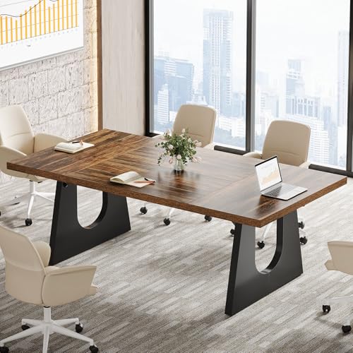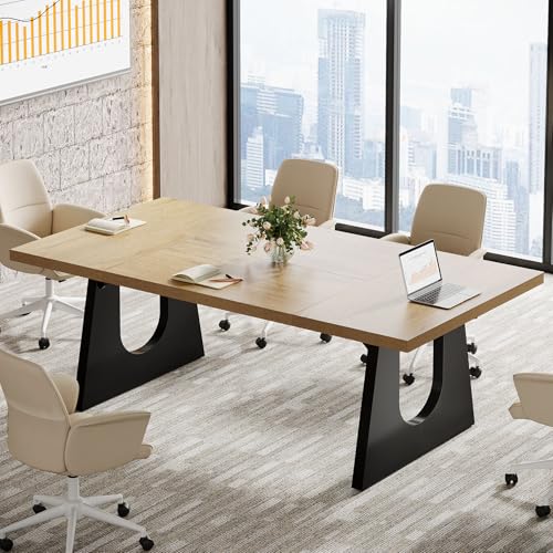 {"about_product": ["Exquisite Design: This conference table adopts the rural retro design concept, which greatly demonstrates the simple and natural style, and perfectly suits your needs", "Robust and Sturdy: The conference table is made of high-quality wood. The thickened MDF tabletop is 1.37\", which has excellent stability and is waterproof, scratch-resistant, wear-resistant, and easy to clean. Additionally, the table is equipped with scratch-resistant feet and has sturdy wooden and metal supports", "Ample Space: The size of the rectangular conference table is 70.9\" W x 35.43\" D x 29.21\" H, which is large enough to accommodate at least 6 people. It can be used alone or in groups, making greater use of space", "Versatile Use: This conference table features a versatile design with no designated main seat, making it suitable for various settings. Whether placed in a corporate boardroom, a home office reception area, or an academic exchange center, it seamlessly adapts to different needs", "Easy Assembly: The table comes with straightforward instructions and all the necessary hardware for easy assembly, so you can set it up quickly without professional help. Should you encounter any issues with our table, please don't hesitate to get in touch with our friendly customer service team. We are here to assist you throughout the entire process"], "product_description": null, "product_information": {"ASIN": "B0DG56SHFS", "Size": "X-Large", "Color": "Oak and Black", "Shape": "Rectangular", "Theme": "Conference, Office", "Base Type": "Leg", "Leg Style": "Straight Leg", "Top Color": "Oak", "Base Color": "Black", "Brand Name": "Tribesigns", "Item Width": "70.9 Inches", "Model Name": "Conference Table", "Style Name": "Modern", "Is Electric": "No", "Is Foldable": "No", "Item Height": "29.21 inches", "Item Weight": "97 Pounds", "Manufacturer": "Tribesigns", "Model Number": "CT-NY259", "Table Design": "Conference Table", "Material Type": "Engineered Wood", "Warranty Type": "Limited", "Extended Length": "70.9 Inches", "Handle Material": "Engineered Wood", "Number of Items": "1", "Furniture Finish": "Oak", "Seating Capacity": "6", "Best Sellers Rank": "#252,818 in Office Products (See Top 100 in Office Products) #84 in Conference Room Tables", "Top Material Type": "Engineered Wood", "Is Stain Resistant": "Yes", "Tabletop Thickness": "1.1 Inches", "Frame Material Type": "Engineered Wood", "Included Components": "Assembly Guide, Installation Tool", "Base To Top Distance": "29.21 Inches", "Indoor Outdoor Usage": "Indoor", "Is the item resizable?": "No", "Ground To Item Distance": "29.21 Inches", "Item Dimensions D x W x H": "35.43\"D x 70.9\"W x 29.21\"H", "Specific Uses For Product": "Non Residential Use, Residential Use", "Includes All Assembly Tools": "Yes", "Unextended Seating Capacity": "6", "Recommended Uses For Product": "Meeting, Reading, Writing", "Maximum Weight Recommendation": "220 Pounds", "Tools Recommended For Assembly": "Screw Driver"}, "product_details": {"Brand": "Tribesigns", "Item Weight": "97 Pounds", "Frame Material": "Engineered Wood", "Product Dimensions": "35.43"D x 70.9"W x 29.21"H", "Maximum Weight Recommendation": "220 Pounds"}}