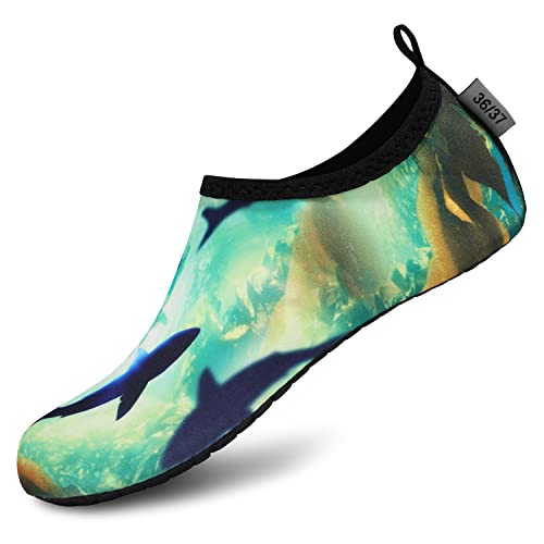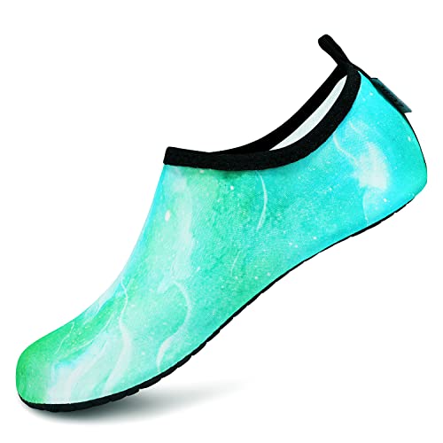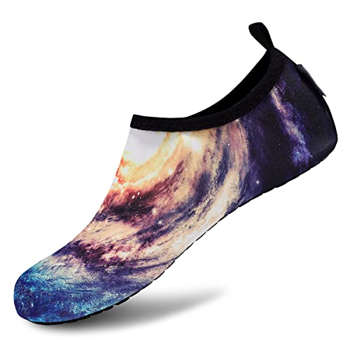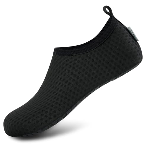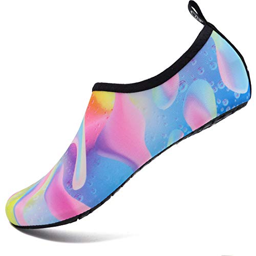 {"about_product": ["Recommended 1: CONVENIENCE - Smooth neck design prevents chafing when wearing our water shoes. It is convenient to wear and take off.", "Recommended 2: COMFORTABLE FIT -- Breathable and smooth fabrics with fine stretch on uppers. Like socks, flexible and comfortable.", "Recommended 3: RUBBER OUTSOLE & FOOT SAFETY -- Wearable and top-quality rubber sole, which protects your feet from being hurt by sharp objects.", "Recommended 4: OCCASION - Yoga Training, beach, swimming, pool, weight training, wake-boarding, sailing, boating, kayaking, windsurfing, cycling, jogging, walking, fishing, beach volleyball, gardening, lawn, car-washing and driving. Family outings!", "Tips:VARIOUS SIZE AVAILABLE -- fit different feet,little kids, big kids,men,women are available."], "product_description": null, "product_information": {"ASIN": "B07JPYSNDP", "Department": "unisex-adult", "Customer Reviews": "4.3 4.3 out of 5 stars \n\n (145,811)", "Product Warranty": "For warranty information about this product, please click here", "Best Sellers Rank": "#1,710 in Clothing, Shoes & Jewelry (See Top 100 in Clothing, Shoes & Jewelry) #3 in Men's Water Shoes #4 in Women's Water Shoes", "Item model number": "VIFUUR-XFUwatershoes", "Package Dimensions": "12.17 x 5.39 x 1.93 inches; 7.05 ounces", "Date First Available": "July 25, 2018"}, "product_details": {"Fabric type": "100% Polyester", "Sole material": "Rubber", "Inner material": "Polyester and spandex", "Outer material": "Polyester and spandex"}}