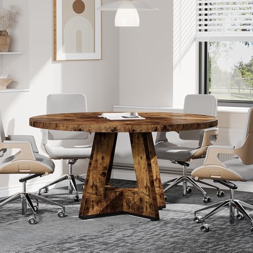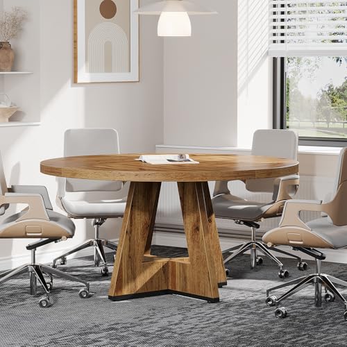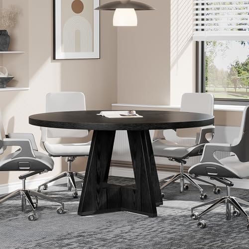 {"about_product": ["- Spacious & Comfortable: The generously sized Tribesigns 47-Inch round conference table can comfortably accommodate 4-6 people, making it a perfect choice for large team meetings, brainstorming sessions, or group projects. Its spacious design ensures no one is squished, everyone gets ample elbow room, and the essence of teamwork is reinforced", "- Superior Quality and Durability: This meeting room table features a thickened tabletop crafted from high-quality wood, ensuring it can endure the crunch of extensive use. Robust and ready to serve, this table is ideal for use in commercial offices, coworking spaces, or even at home", "- Stable & Robust Design: The conference table also boasts a sturdy wood base designed to provide optimum stability even during intense discussions or lengthy meetings. The consistent performance makes it a durable piece that will stand the test of time", "- Adjustable Foot Pads: Adding to its versatility, the table has adjustable foot pads that allow it to hold a firm and level position even on uneven floors. These enhancements ensure your meetings run smoothly without the nuisance of a wobbly table", "- Metal Fixing Brackets: Crafted with high-quality materials, this round table features strong metal fixing brackets that firmly hold the tabletop in place, preventing wobbling and ensuring a smooth, steady surface for meetings and presentations"], "product_description": null, "product_information": {"ASIN": "B0DGQG9GZT", "Base": "Wood", "Size": "round, 47.24-inch diameter x 29.5-inch height", "Color": "Grey", "Shape": "Round", "Tilting": "No", "Base Type": "Pedestal", "Leg Style": "Straight Leg", "Top Color": "Grey", "Base Color": "Grey", "Brand Name": "Tribesigns", "Model Name": "XK00379", "Style Name": "Modern", "Is Foldable": "No", "Item Height": "29.5 inches", "Item Weight": "53 Pounds", "Handle Color": "walnut", "Manufacturer": "Tribesigns", "Model Number": "XK00379", "Table Design": "Conference Table", "Material Type": "Wood", "Extended Length": "94.48 Inches", "Handle Material": "Wood", "Number of Items": "1", "Frame Joint Type": "[EG]", "Furniture Finish": "Wood", "Is Customizable?": "No", "Seating Capacity": "6", "Best Sellers Rank": "#51,531 in Office Products (See Top 100 in Office Products) #3 in Conference Room Tables", "Top Material Type": "Wood", "Handle Finish Type": "Natural Wood", "Is Stain Resistant": "Yes", "Tabletop Thickness": "1.18 Inches", "Frame Material Type": "Wood", "Included Components": "Assembly Guide, Installation Tool", "Indoor Outdoor Usage": "Indoor", "Age Range Description": "Adult", "Is the item resizable?": "No", "Item Dimensions D x W x H": "47.24\"D x 47.24\"W x 29.5\"H", "Product Care Instructions": "Wipe with Damp Cloth, Wipe with Dry Cloth", "Includes All Assembly Tools": "Yes", "Unextended Seating Capacity": "6", "Recommended Uses For Product": "Meeting", "Maximum Weight Recommendation": "60 Kilograms", "Tools Recommended For Assembly": "Screw Driver", "Manufacturer Warranty Description": "18 momths."}, "product_details": {"Brand": "Tribesigns", "Item Weight": "53 Pounds", "Frame Material": "Wood", "Product Dimensions": "47.24"D x 47.24"W x 29.5"H", "Maximum Weight Recommendation": "60 Kilograms"}}