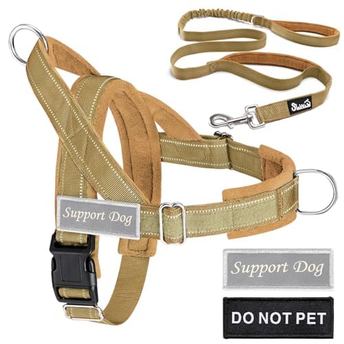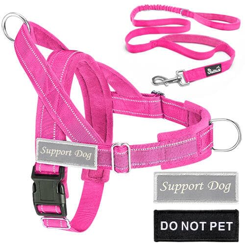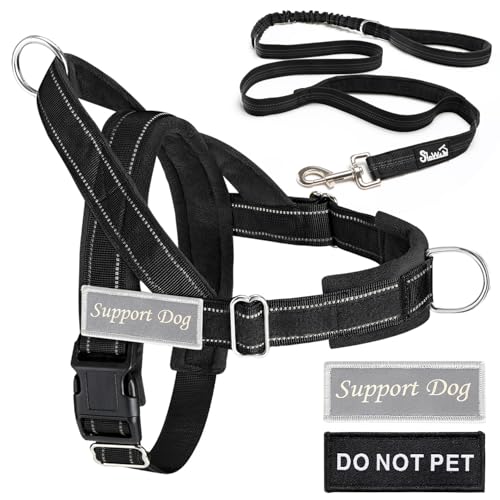 {"about_product": ["【No Pull & No Choke Design】: This harness simply goes through the dog's head, snaps on the belly and that's the end of it. Besides, the D-ring on the chest strap is used for no pull dog training and guiding direction, and the O-ring on the back is used for daily dog walking. The triangular design on both sides of this no pull harness helps to distribute the pulling force, so you don't have to worry about the dog choking when suddenly pulling.", "【Soft Velvet Padded & Durable】: With soft thicken and wider fleece pads used beneath the strap of neck, back and handle atop, this dog harness could reduce friction from movement and protect the health of the dog's skin. It also uses superior nylon material to ensure long-lasting use.", "【Leash Double Handle & Elastic Band】: You can use the top handle for casual dog walking, and the center handle for controlling the direction of the dog, easily guiding it through crowded areas and preventing storming in case of accidents. And the springy design of the leash really absorbs the pull from large strong dogs without tugging on your wrist and shoulder.", "【Neck & Chest Adjustable】: SlowTon dog harness is equipped with adjustable loop for both neck and chest girth, and the quick-release buckle allows for quick donning. No matter what kind of breed and shape, it provides proper length after adjusting to fit your dog's neck and chest, which is perfectly designed for walking, jogging, running, hiking and training.", "【Tangle-free Leash & Reflective】: The heavy-duty 360°swivel metal hook ensures no tangle. Plus, it has an elastic bungee and 2 padded handles, which is great for walking training of city dogs, or wandering off in country. Furthermore, its super bright reflective strips ensure a safe walk both day and night. And it comes with 2 hook and loop straps, a regular one Support Dog and the reflective one DO NOT PET."], "product_description": null, "product_information": {"ASIN": "B0DGXJWK9J", "Size": "Large", "Color": "Black", "Material": "Nylon", "Brand Name": "SlowTon", "Directions": "Put the chest strap through the dog's head, then fasten the belly snap.", "Model Name": "UPRO-PET39-B-L-AO", "Item Weight": "0.45 Kilograms", "Manufacturer": "SlowTon", "Care Instructions": "Machine Wash", "Item model number": "UPRO-PET39-B-L-AO", "Date First Available": "September 13, 2024", "Target Audience Keyword": "dogs", "Item Package Dimensions L x W x H": "9.33 x 8.74 x 2.95 inches"}, "product_details": {"Size": "Large", "Brand": "SlowTon", "Color": "Black", "Pattern": "Solid", "Material": "Nylon"}}