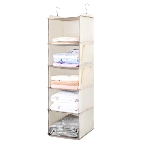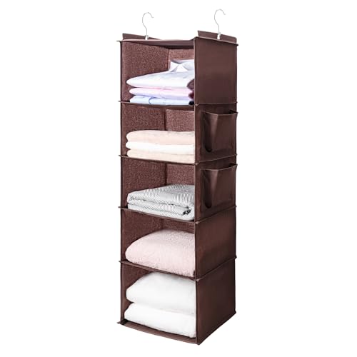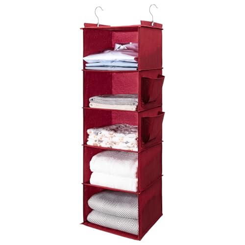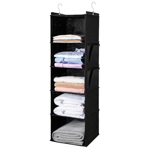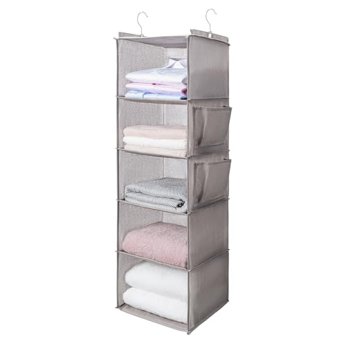 {"about_product": ["Maximized Storage: This 5-tier hanging closet organizer provides ample storage space for clothes, accessories, and more.", "Durable Construction: Made with sturdy, breathable fabric and a reinforced steel frame for long-lasting use.", "Space-Saving Design: Compact and hanging design helps maximize closet space and keep items organized.", "Versatile Use: Suitable for closets, bedrooms, laundry rooms, or any area needing extra storage.", "Easy Assembly: Simple setup with no tools required, allowing for quick installation and use."], "product_description": null, "product_information": {"ASIN": "B0DHMJSDXM", "Size": "1", "Brand": "BOOMIBOO", "Color": "Grey", "Style": "Modern", "Room Type": "Closet", "Model Name": "5 Tier Shelf Hanging Closet Organizer", "Item Weight": "1.1 pounds", "Manufacturer": "BOOMIBOO", "Product Name": "Hanging Closet Shelf", "Number of Items": "1", "Special Feature": "Closet Organizer, Hanging", "Furniture Finish": "Plastic", "Assembly Required": "Yes", "Best Sellers Rank": "#6,136 in Home & Kitchen (See Top 100 in Home & Kitchen) #4 in Hanging Shelves", "Installation Type": "Hanging", "Item model number": "5 Tier Shelf Hanging Closet Organizer", "Number of Shelves": "5", "Product Dimensions": "11.8\"D x 11.8\"W x 41.7\"H", "Included Components": "Hanging Closet Organizer", "Shelf Bracket Shape": "Rectangular", "Date First Available": "September 21, 2024", "Product Care Instructions": "Wipe with Dry Cloth", "Specific Uses For Product": "Clothes", "Recommended Uses For Product": "Closet Organization", "Assembly Instructions Description": "Included"}, "product_details": {"Brand": "BOOMIBOO", "Shape": "Trapezoid", "Style": "Modern", "Material": "Polypropylene", "Room Type": "Closet", "Shelf Type": "Hanging Shelf", "Mounting Type": "Hanging", "Special Feature": "Closet Organizer, Hanging", "Number of Shelves": "5", "Product Dimensions": "11.8"D x 11.8"W x 41.7"H"}}