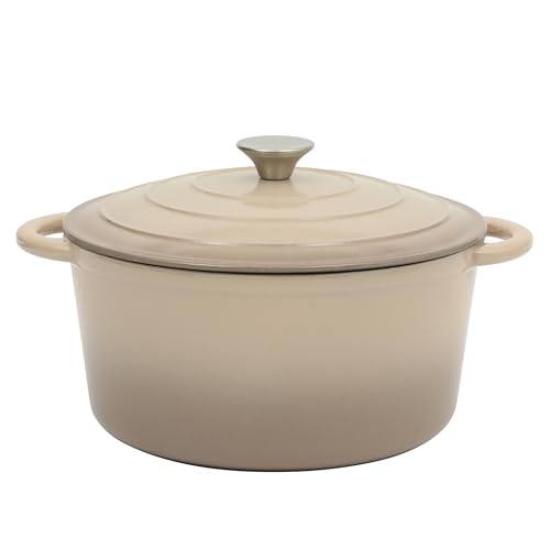 {"about_product": ["A BOX INCLUDES: One 5-quart enameled cast iron Dutch oven with lid", "BEST IN VERSATILITY: Cast iron Dutch oven is an exceptional piece of cookware to braise and bake, fry and sauté, simmer and serve. Heavy-duty construction promotes superior heat distribution and retention.", "PORCELAIN ENAMEL FINISH: Enameled surface never needs seasoning. Glossy finish is easy to clean and hard to miss with its beautiful, vibrant colorway.", "EASY-GRIP HANDLES: Sturdy side handles offers a strong grip when serving from the oven to the table.", "SELF-BASTING LID: Drip points underneath the lid allow continuous basting to improve flavor and texture"], "product_description": "A cast iron Dutch oven is a classic piece of cookware and a worthwhile investment for new and experienced home chefs. The Addlestone 5-quart Enameled Cast Iron Dutch Oven with Lid is safe to use on all stovetops and in the oven up to 500°F. As a mult-use pot, this Dutch oven can slow-cook, bake, deep-fry and sear perfectly. Durable cast iron construction distributes and retains heat nicely and evenly, leaving no spot uncooked. Beautifully coated with porcelain enamel finish, it is easy to clean and maintain as it requires no constant seasoning compared to a pre-seasoned cast iron cookware. It comes with a self-basting lid to lock in the heat and redirect the moisture back onto the food. And when all the work is done, serve a warm, homemade meal in this vibrant Dutch oven that deserves to be at the center of every spread. Hand wash only. \n\nMake every home a Gibson Home. A multi-category collection of kitchen and dining essentials, Gibson Home offers style and value for everyday living. Enjoy preparing, cooking, and serving delicious meals in a wide selection of dinnerware, cookware, bakeware, cutlery, glassware, and more. Designed with function, reliability, and versatility, Gibson Home provides dining and entertaining staples to make every mealtime or gathering a culinary success", "product_information": {"UPC": "085081650580", "ASIN": "B0DHT3DDQY", "Brand": "Gibson Home", "Color": "Gradient Red", "Shape": "Round", "Capacity": "5 Liters", "Material": "Cast Iron", "With Lid": "Yes", "Finish Type": "Enameled", "Item Weight": "13.07 pounds", "Is Oven Safe": "Yes", "Lid Material": "Enameled Cast Iron", "Manufacturer": "Gibson Overseas, Inc.", "Best Sellers Rank": "#10,696 in Kitchen & Dining (See Top 100 in Kitchen & Dining) #55 in Dutch Ovens", "Item model number": "143803.02", "Is Dishwasher Safe": "No", "Product Dimensions": "12.6\"W x 6.7\"H", "Temperature Rating": "500 Degrees Fahrenheit", "Date First Available": "September 23, 2024", "Product Care Instructions": "Hand Wash Only"}, "product_details": {"Brand": "Gibson Home", "Color": "Gradient Red", "Capacity": "5 Liters", "Material": "Cast Iron", "Finish Type": "Enameled"}}