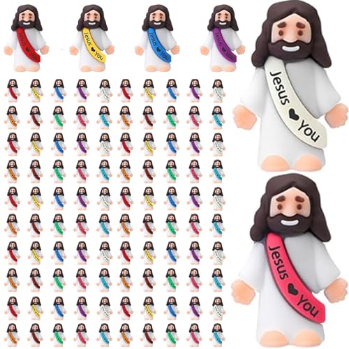 30PCS Little Jesus Figures, Mini Jesus Figurines in Bulk, Multicolor Tiny Jesus Figures, Miniature Figurines to Hide and Seek Religious Gifts for Easter Egg Stuffers