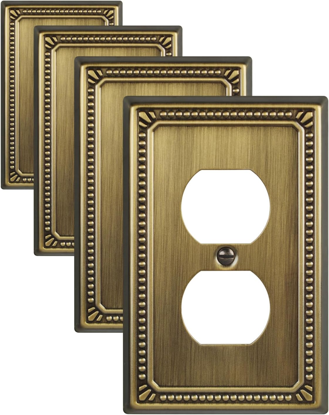 {"about_product": ["【Antique Brass Finish】Exquisite antique brass finish with adorable pearl design, the single duplex wall plate covers effortlessly complement any style of decor, enhancing the practicality and elegance of your home", "【Durable Metal Construction】 Made of sturdy metal, this electrical outlet cover plate can withstand the test of time. Rust and antioxidant material ensures high impact resistance and durability, while also being easy to clean", "【Easy Installation】Each package comes with matching screws to ensure quick and hassle-free installation installation in just minutes. Upgrade the wall effortlessly and elevate the aesthetic appeal of the space", "【Wide Application】The decorative antique brass wall plates are versatile and compatible with dimmers, toggle switches, outlet receptacles, GFCI outlets, etc. They can be used in living rooms, bedrooms, kitchens, offices", "【Product Specification】 Pack of 4 decorative duplex wall plates, size at 3.15'' x 4.88''. Easy replacement of any wall plate of the same configuration"], "product_description": null, "product_information": {"ASIN": "B0DJ2PTY8W", "Size": "1 Duplex 4PK", "Brand": "ZILLSEA", "Color": "Antique Brass", "Shape": "Rectangular", "Usage": "Commercial/Residential", "Finish": "Painted", "Pattern": "1 Duplex 4PK", "Material": "Metal", "Finish Type": "Painted", "Item Weight": "9.6 ounces", "Part Number": "A03HD14Q", "Manufacturer": "ZILLSEA", "Switch Style": "Duplex", "Configuration": "Duplex", "Best Sellers Rank": "#3,326 in Tools & Home Improvement (See Top 100 in Tools & Home Improvement) #22 in Wall Plates", "Installation Type": "Screw-In", "Item model number": "A03HD14Q", "Product Dimensions": "3.15\"W x 4.88\"H", "Batteries Included?": "No", "Batteries Required?": "No", "Included Components": "Mount Screws", "Date First Available": "December 30, 2024", "Warranty Description": "1 Year Warranty", "Item Package Quantity": "1"}, "product_details": {"Brand": "ZILLSEA", "Color": "Antique Brass", "Material": "Metal", "Finish Type": "Painted", "Product Dimensions": "3.15"W x 4.88"H"}}
